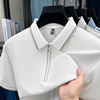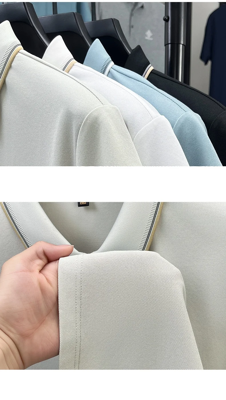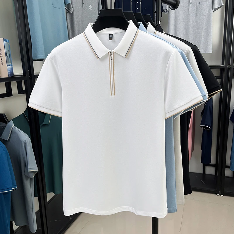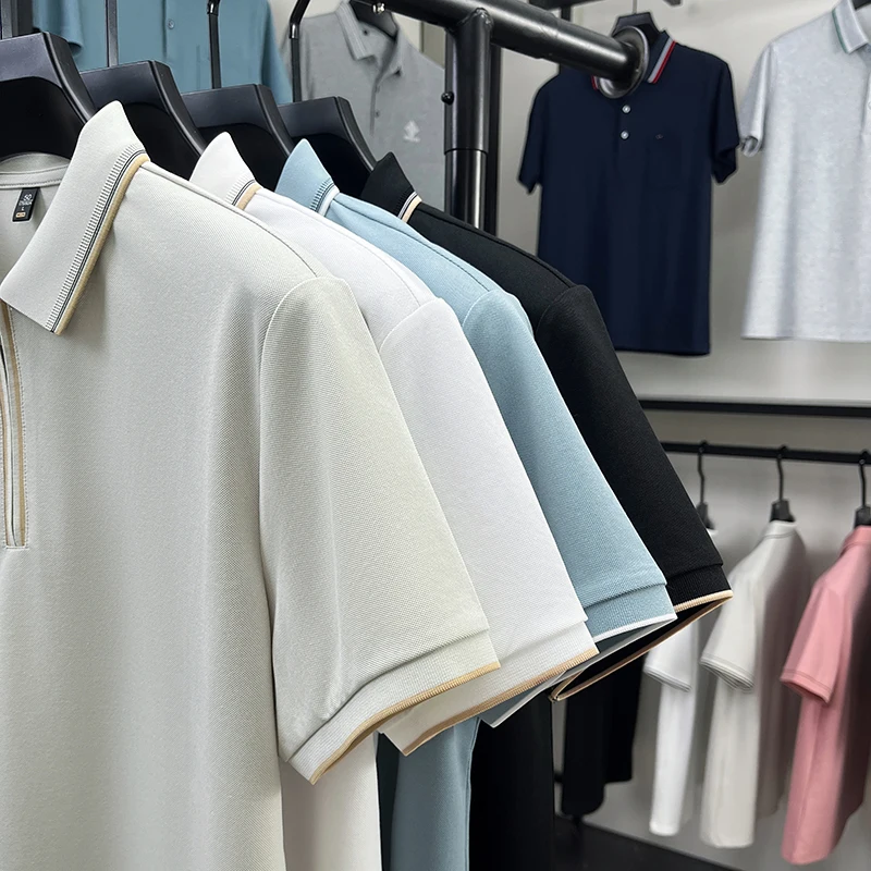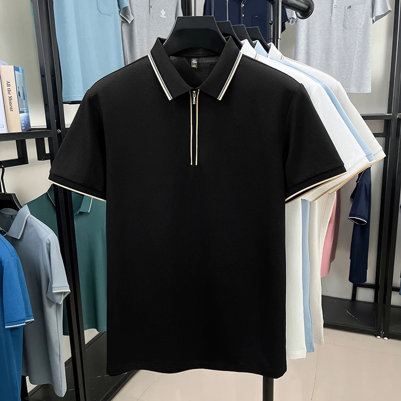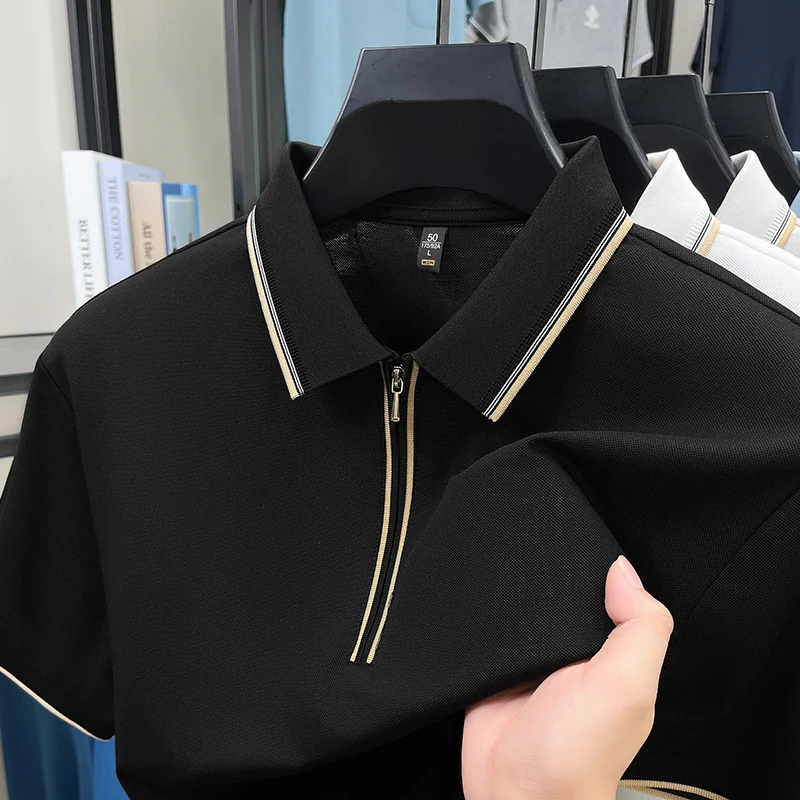 High end brand silk cotton polo shirt zipper design men’s T-shirt summer fashion comfort breath casual solid color short sleeve
