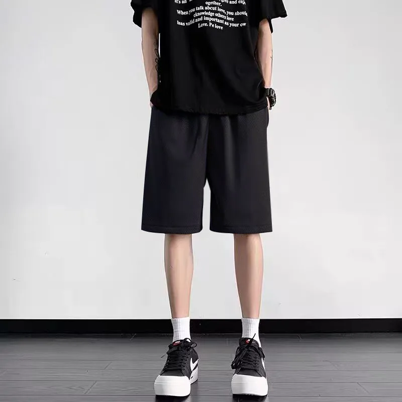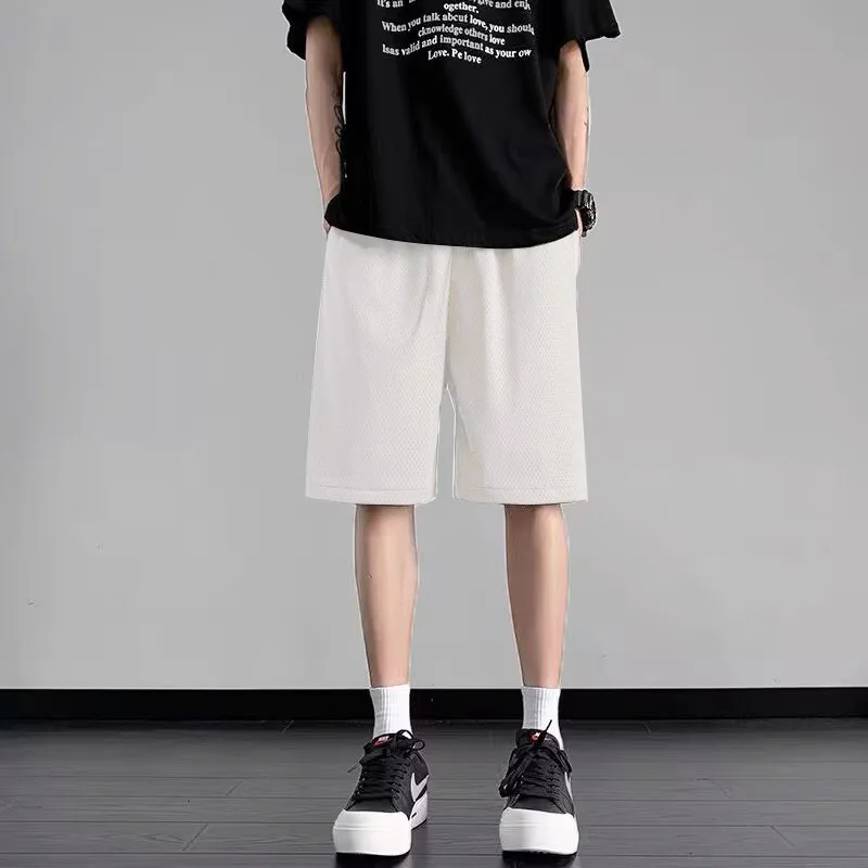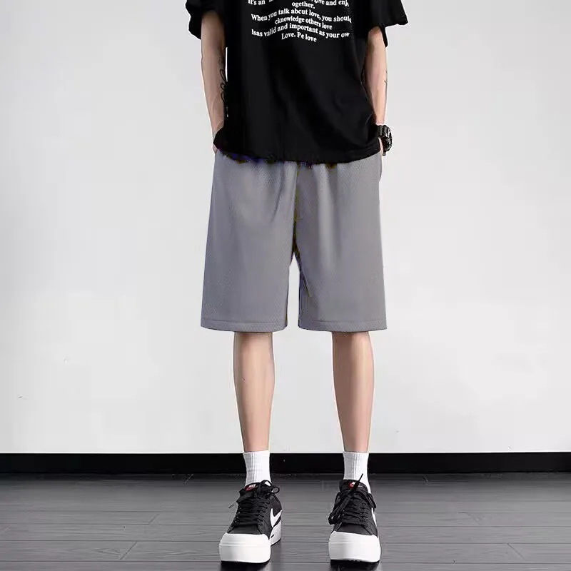 High Quality Polyester Ice Silk Shorts Men 2024 New Korean Version Of Loose Elastic Splicing Beach Five Minute Medium Pants