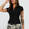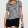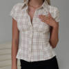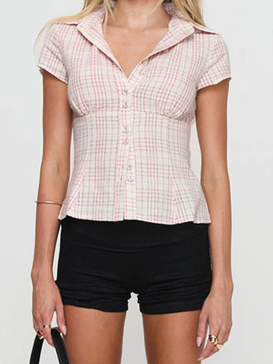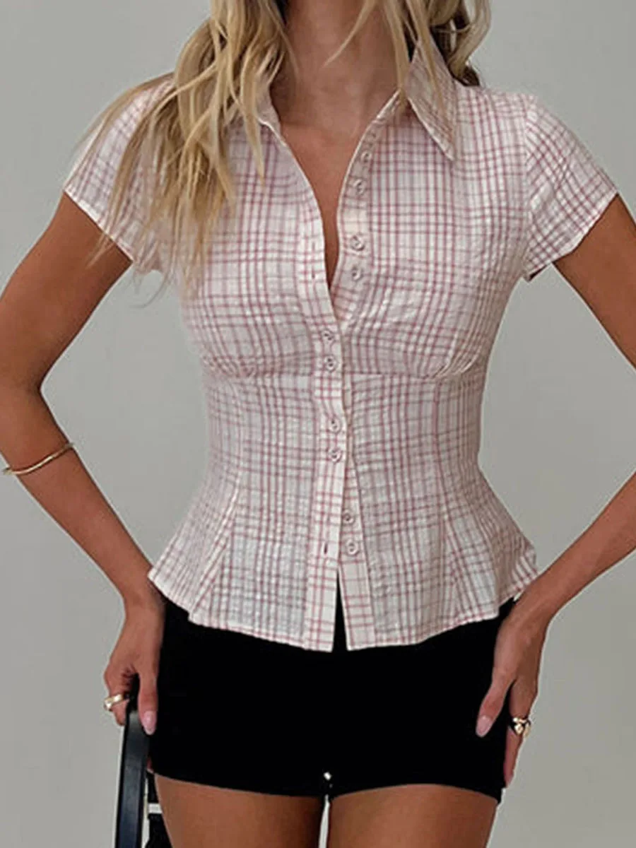 hirigin Women’s Y2K Short Sleeve Plaid Button Down Shirt Button Down Blouses Tops Casual Summer Shirt Tops 90s Streetwear