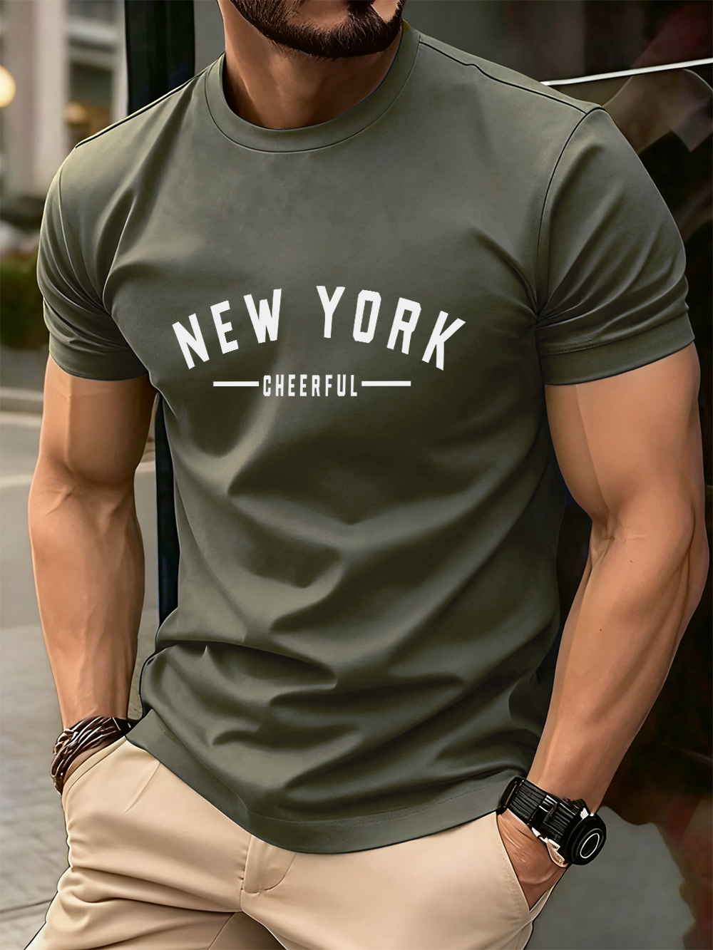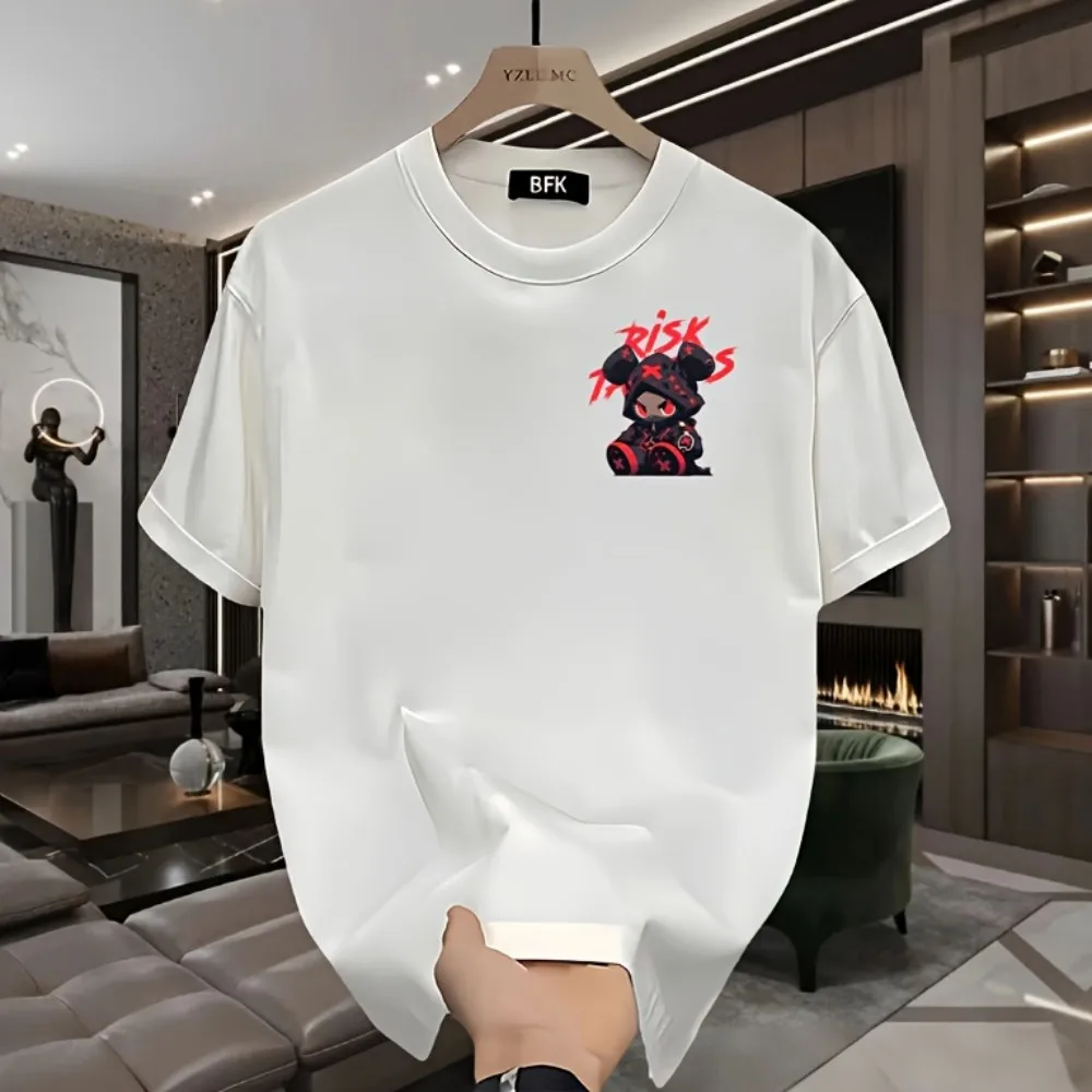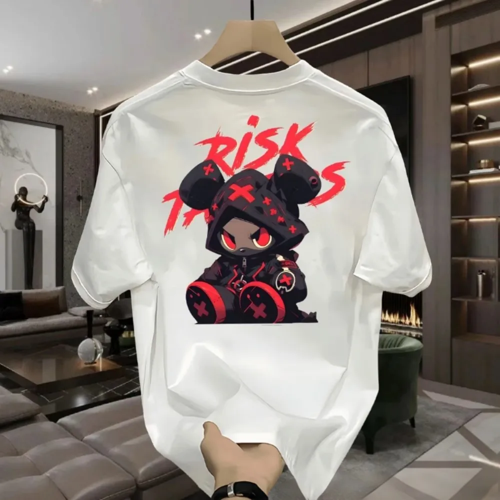 Hot selling men’s high street cartoon printed polyester micro elastic breathable round neck T-shirt outdoor urban fashion top