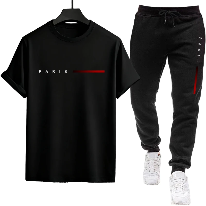 Hot selling summer new men’s set with letter print casual fashion T-shirt short sleeved shorts sports outdoor set