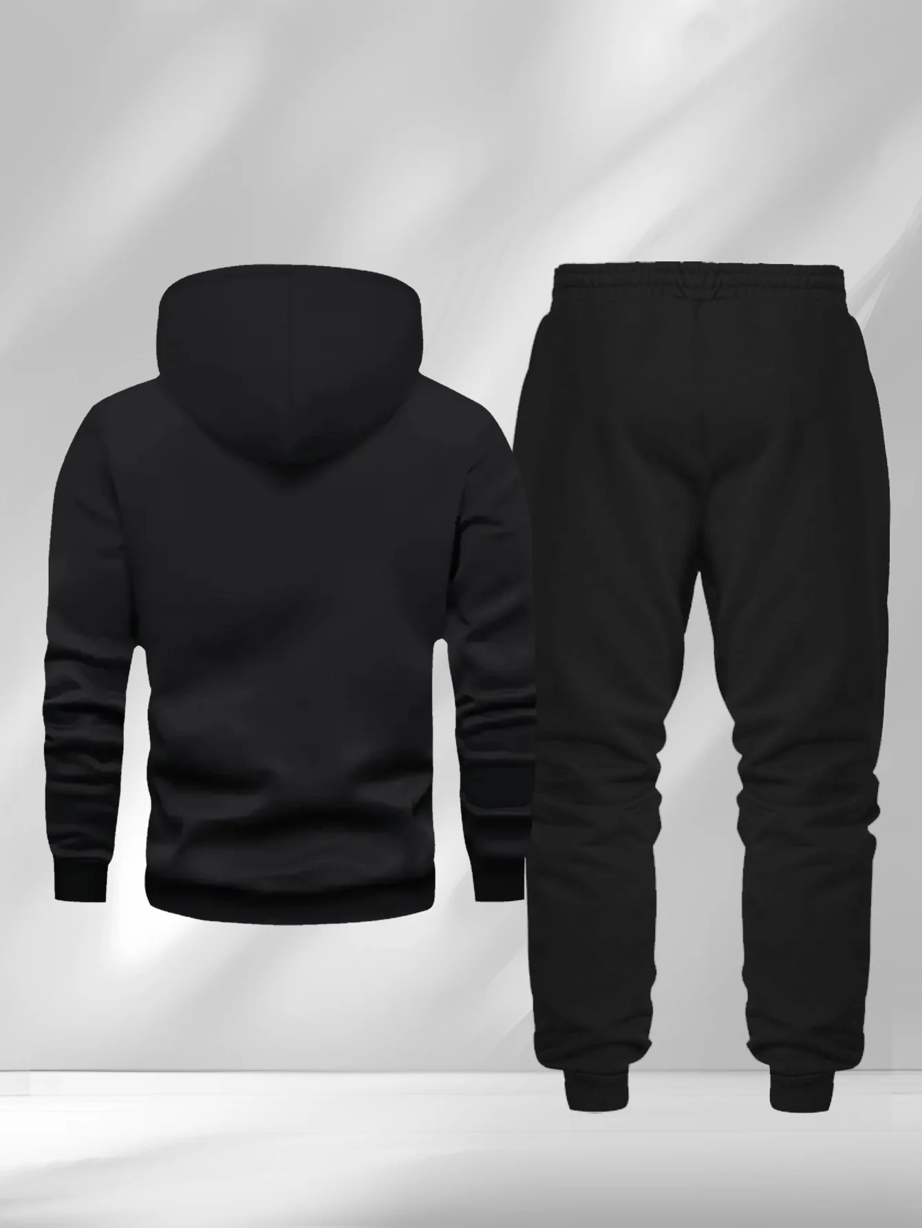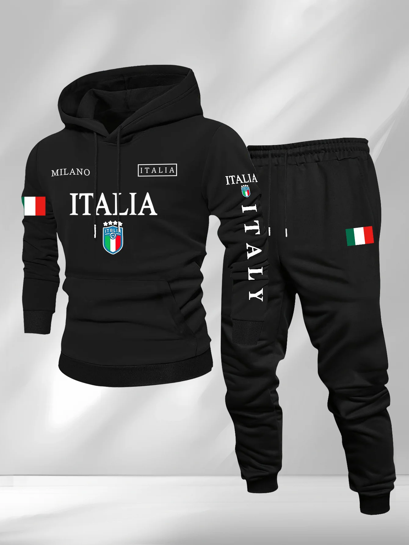 Italy pattern Men’s Hoodie and Bundled pants set fleece Autumn winter two-piece set top bottom sets windproof Warm Cotton suit
