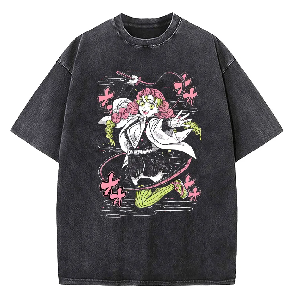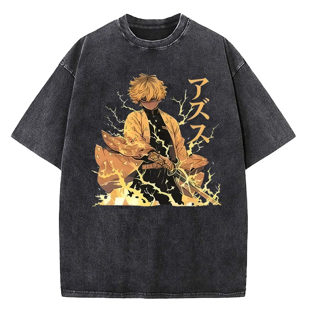 Japanese Anime Demon Slayer Printed Washed Tshirt Men Manga Casual T-shirts Harajuku Male Cotton T Shirt