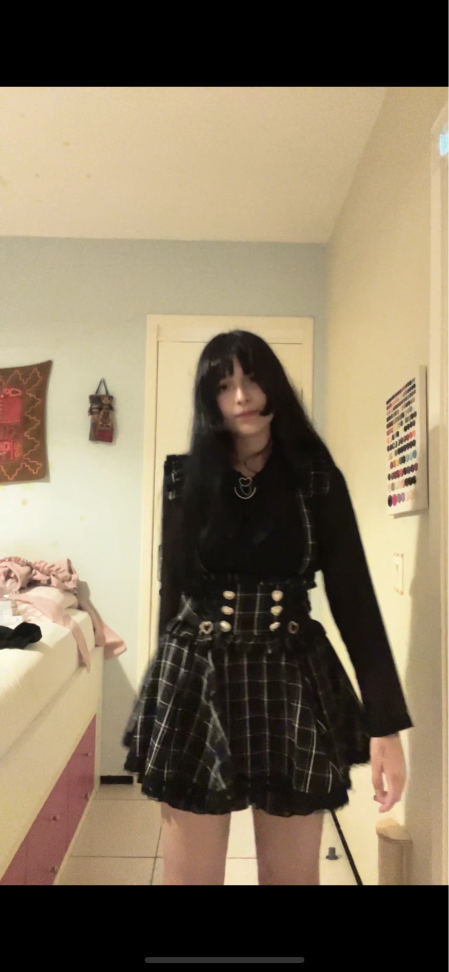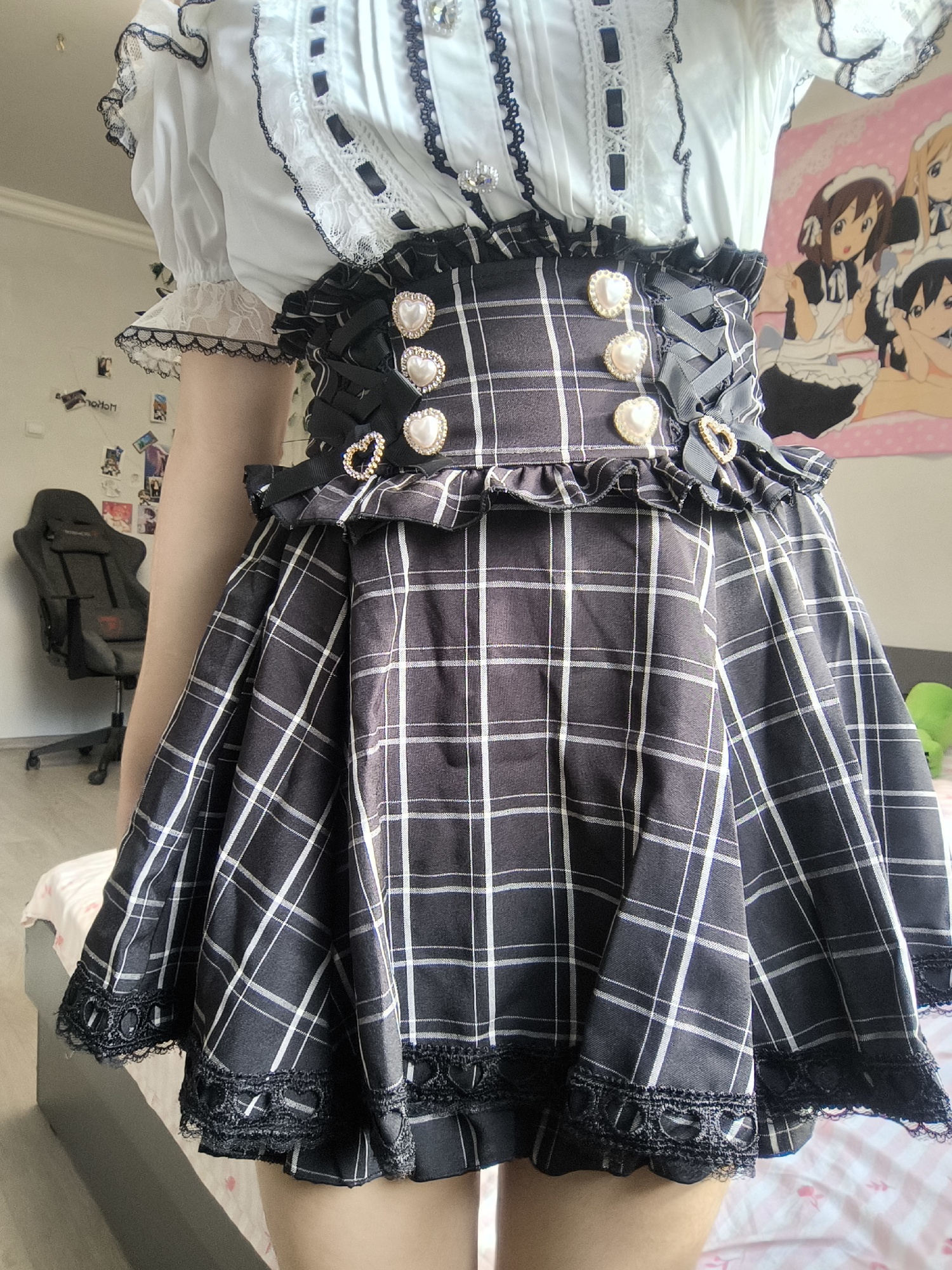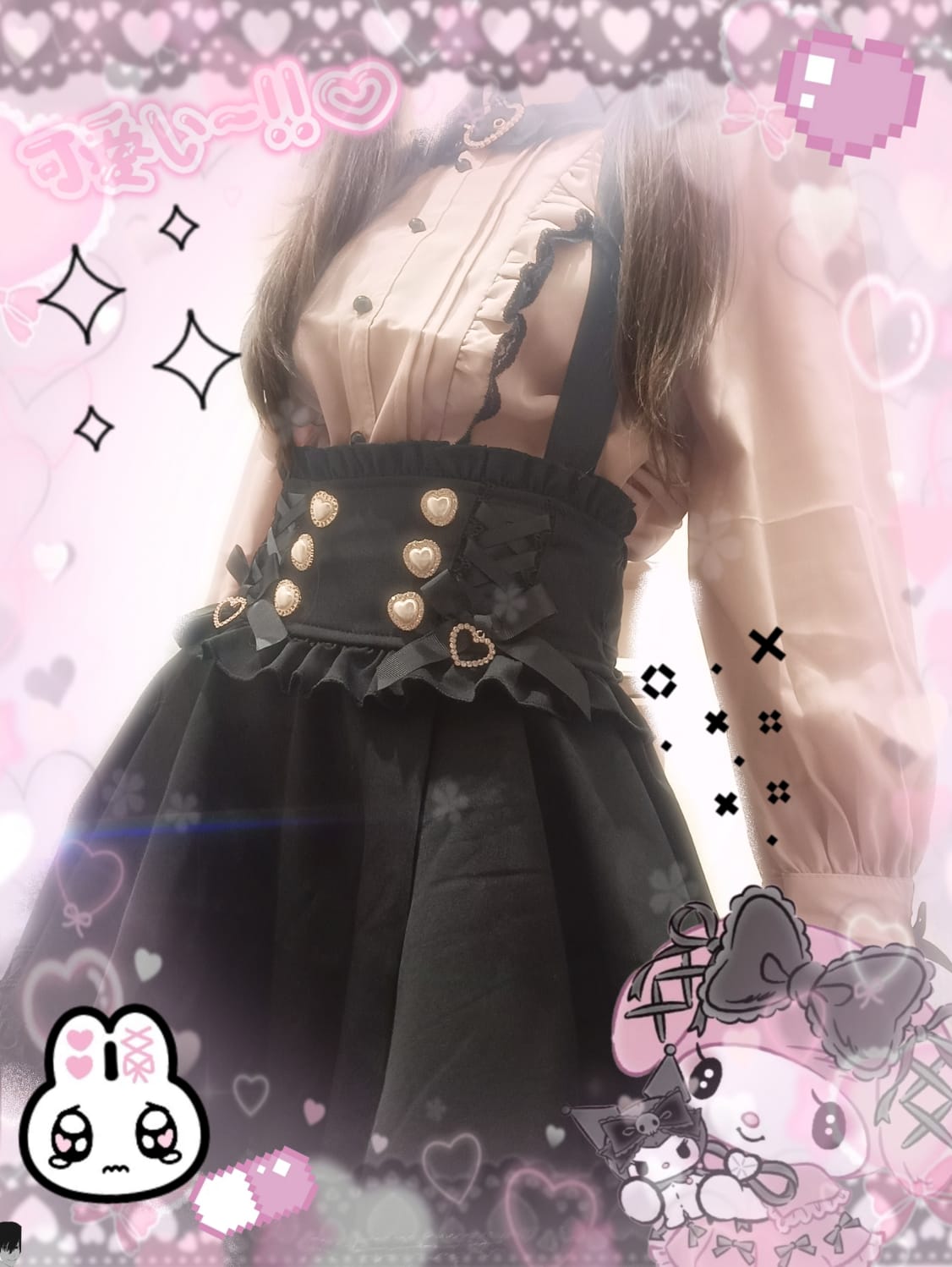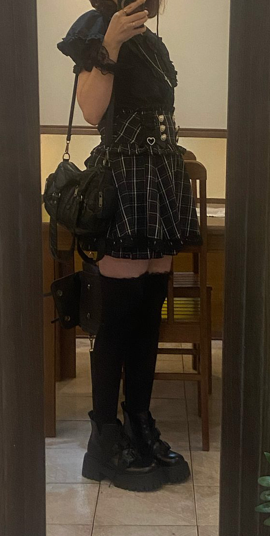 the skirt is very cute!! i was scared at first because the waist band is sort of tight but i was still able to slip through and after it felt very comfy! (the waist band is not too tight, just snug!) my waist size is 31"/79cm for reference and i bought the L size. One thing to notice is that there are buttons inside the skirt to attach the suspenders, but I had to snip open the holes on the suspenders a bit to slip the buttons in 😓. But other than that— its so cute and it goes with my coord very well! Love it~