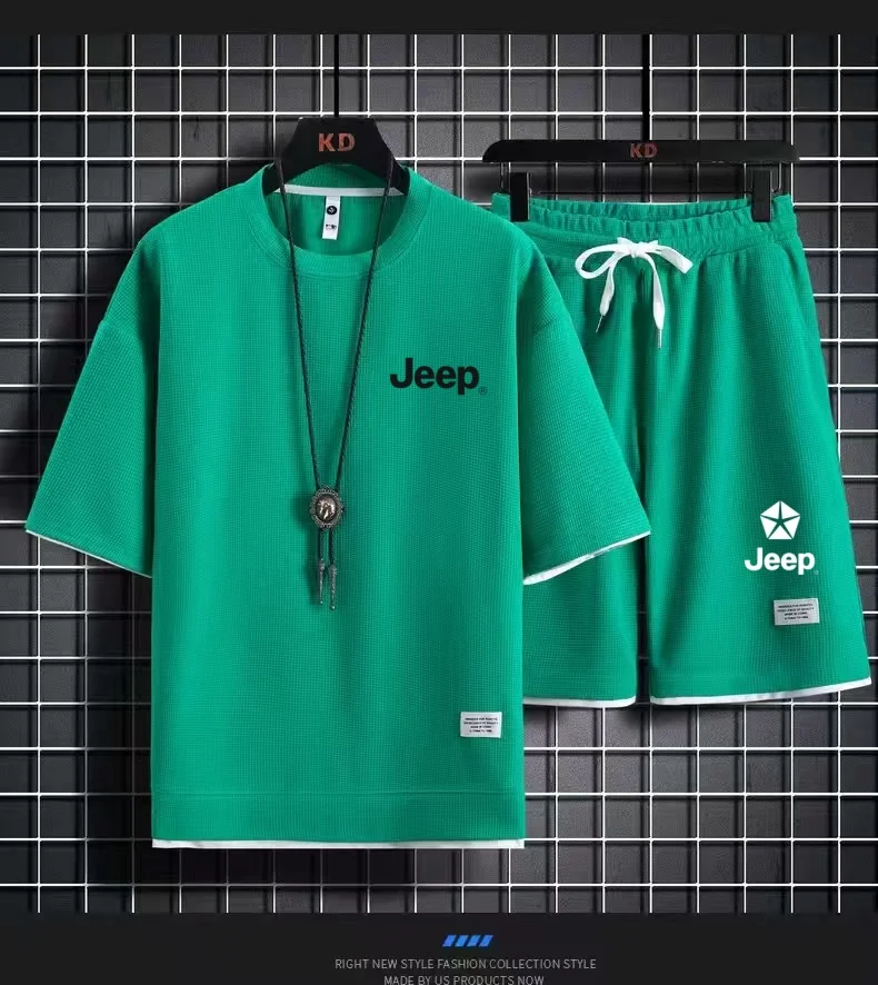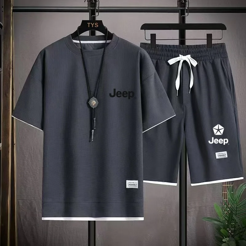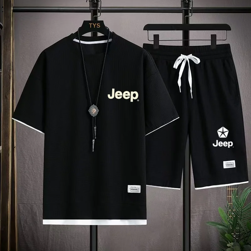Jeep brand 2026 casual shirts and shorts, men’s sportswear, loose short-sleeved T-shirts and summer shorts