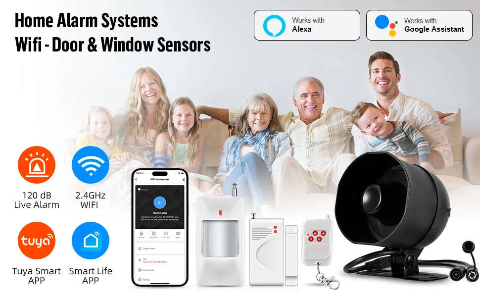 KERUI 120db Siren Alarm System WiFi Tuya Smart Speaker Alarm Kit with Motion Sensor Door Sensor for Home Security Protection