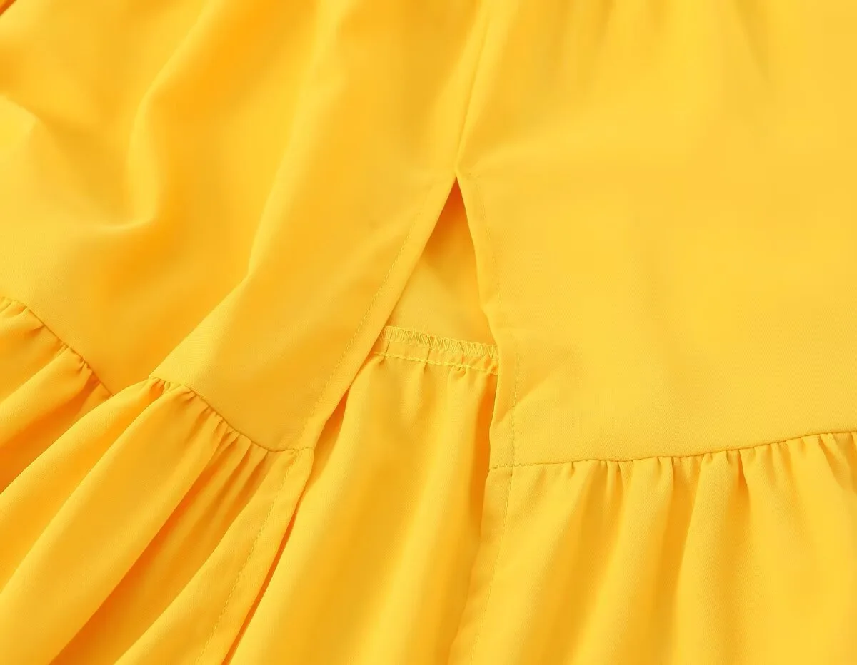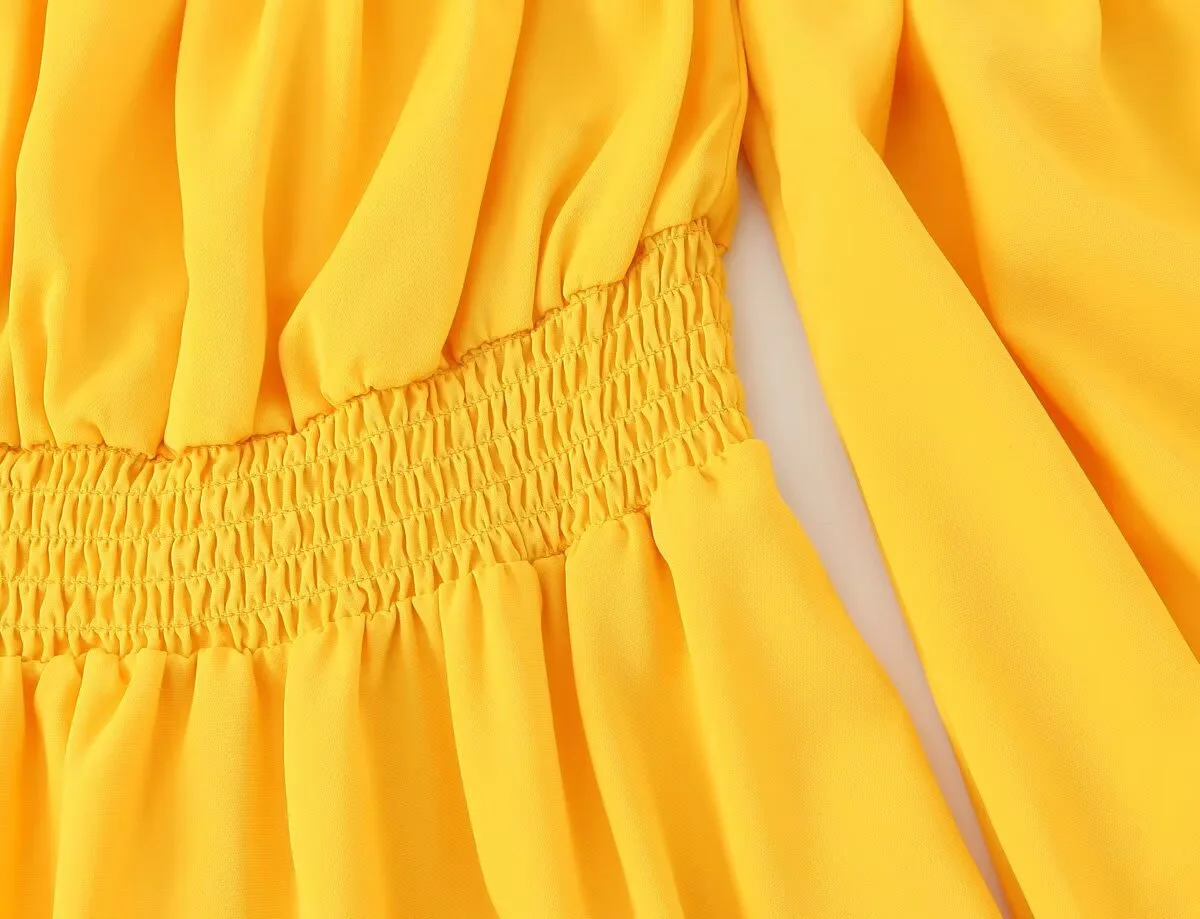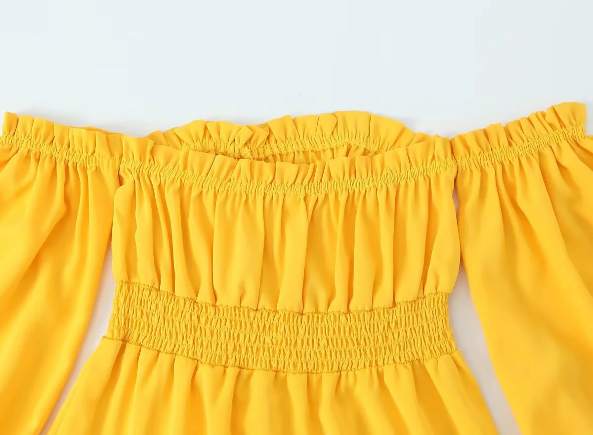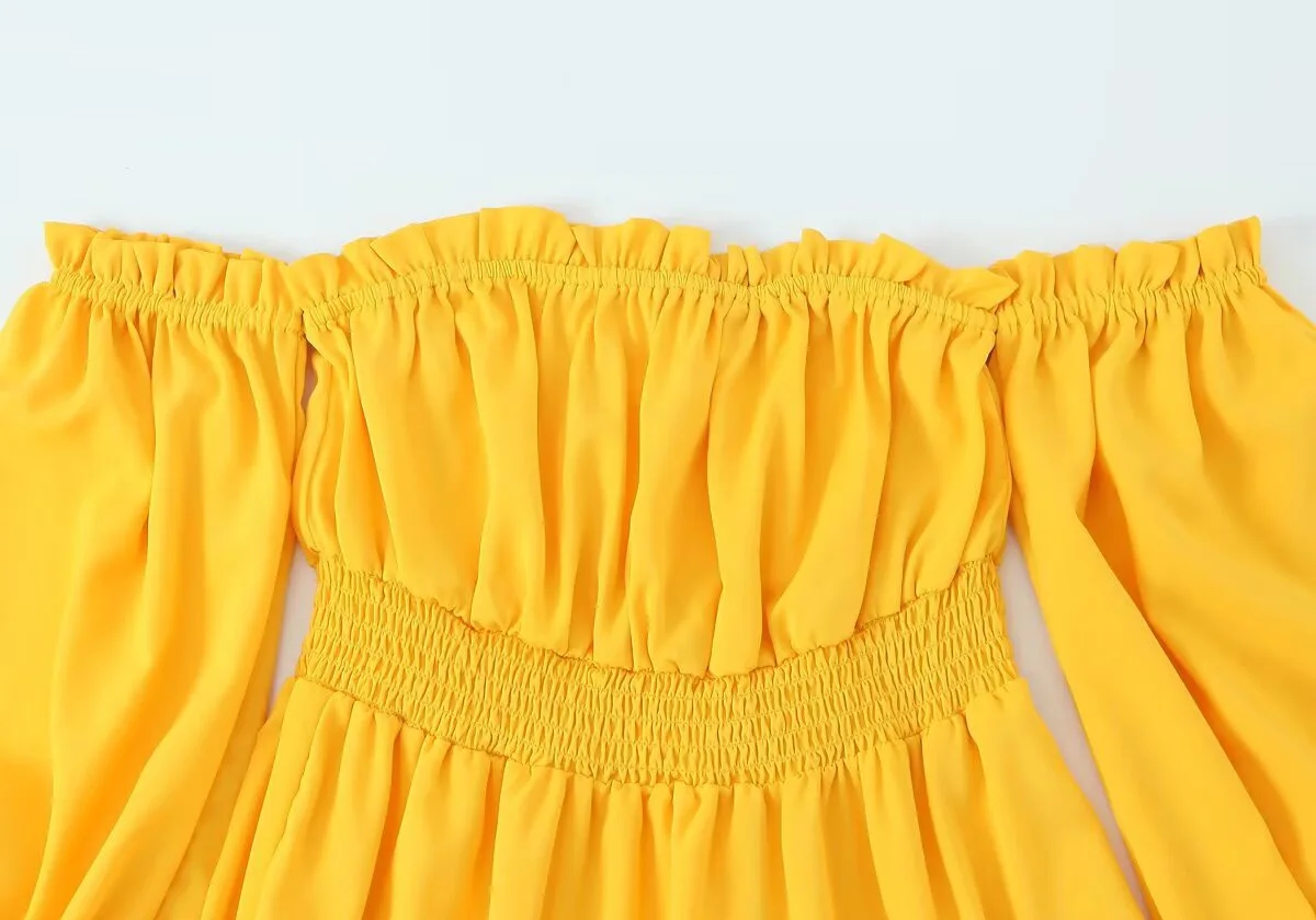 KIDCRKJ Off-shoulder Yellow Spring Women Dress Ruffle-Trimmed Mid Waist Pleated Lady Maxi Dress Elegant Evening Dress For Female