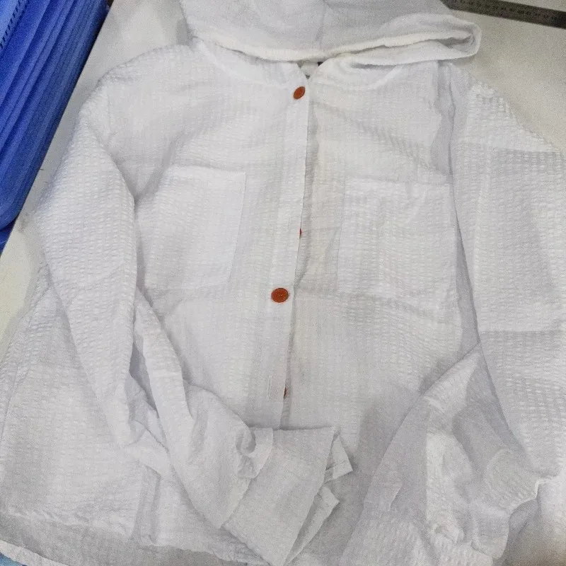 Korean Chic Breathable Stripe Contrast Color Hooded Shirt for Women Loose Long Sleeve Sunscreen Short Fit Single Match All Seaso