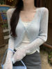Lace Trim One Button Long Sleeve Crop Top Women Short Sleeve Open Front Ribbed Knit Cardigan Sweater Summer Fairycore Outfit