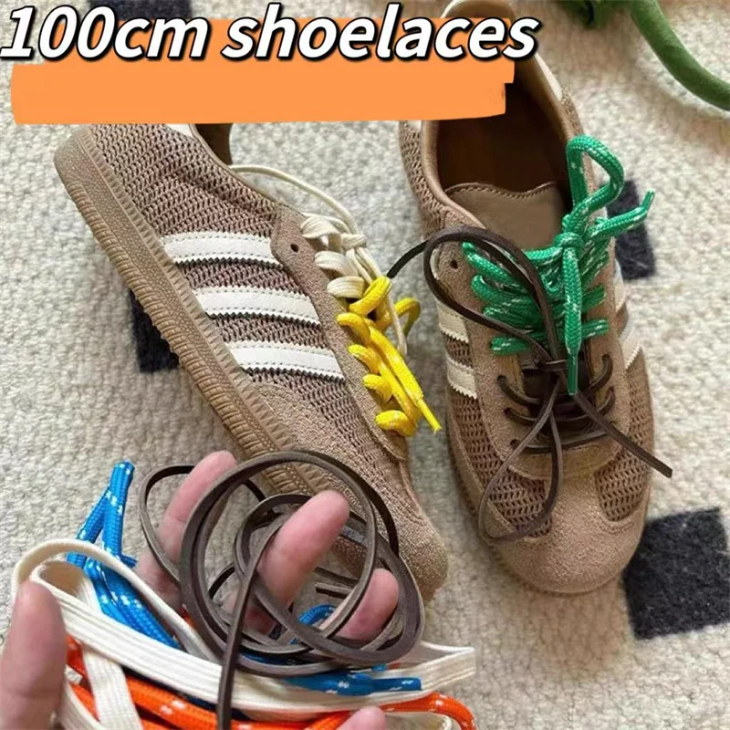 Length 100cm DIY Freedly Round Leather Colorful MIU Shoelaces Canvas Casual Boots Shoe Laces Rope Shoestrings