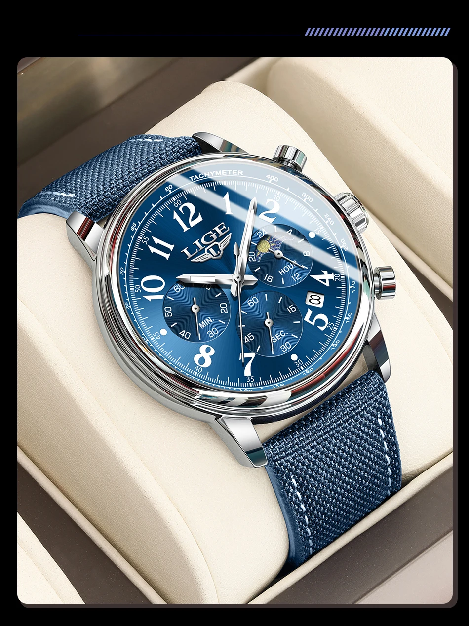 LIGE New Military Watch for Man Leather Sports Waterproof Luminous Chronograph Date Men’s Luxury Watches Quartz Nylon Men Clock