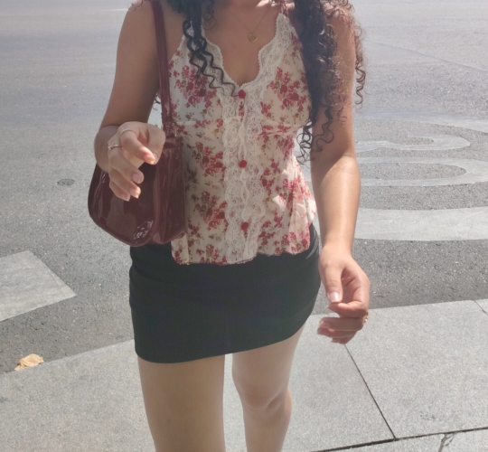 Super linda y cute! La pedí en la talla más grande y se me ajusta perfectamente, sin espacios, totalmente entallada. Al caminar se sube bastante por el tipo de tela ¡cuidado!, sin embargo gracias al short no se ve nada. Cintura: 62 caderas: 90