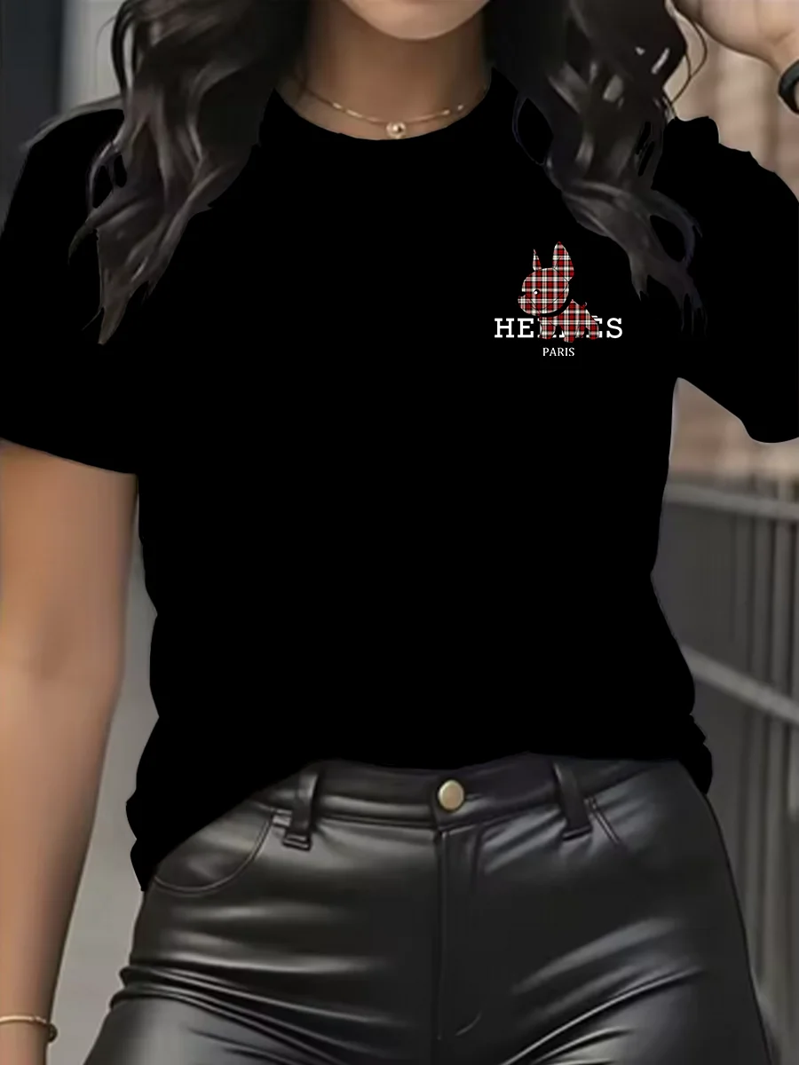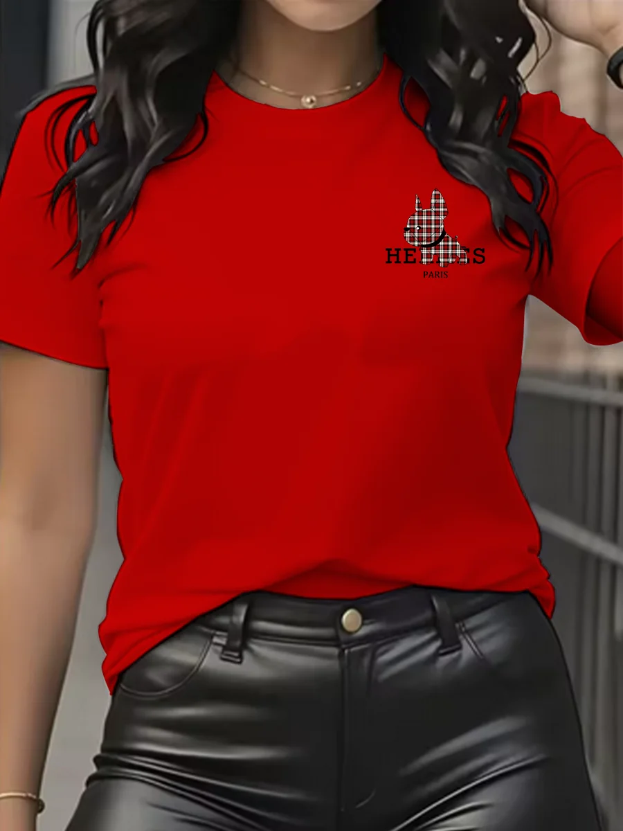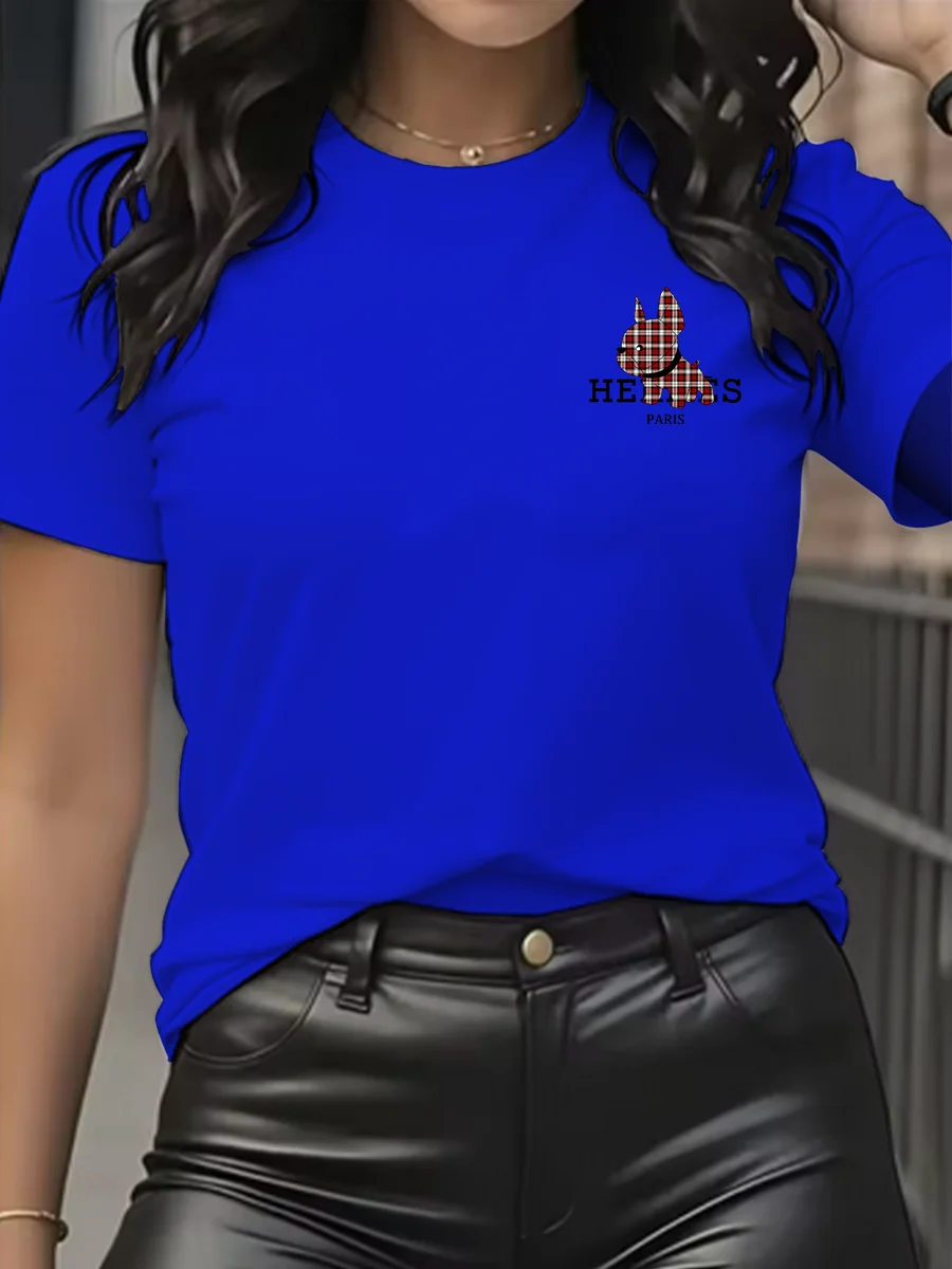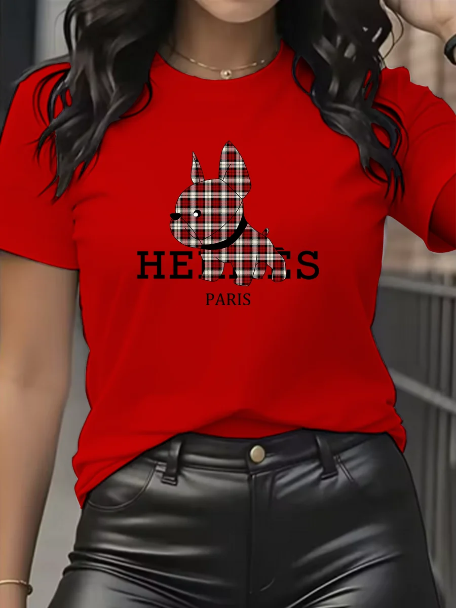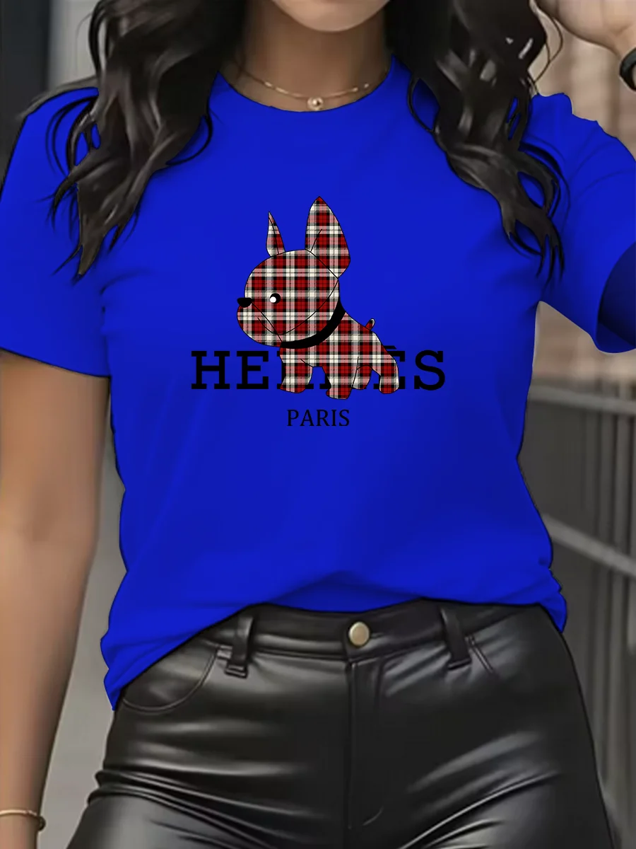 Luxury brand cartoon dog printed T-shirt casual top short sleeve round neck women’s T-shirt spring/summer women’s clothing