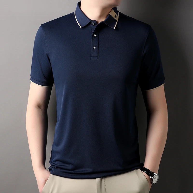 Luxury high-quality ice silk short sleeve POLO shirt men’s brand printed lapel top summer New cool and breathable casual T-shirt