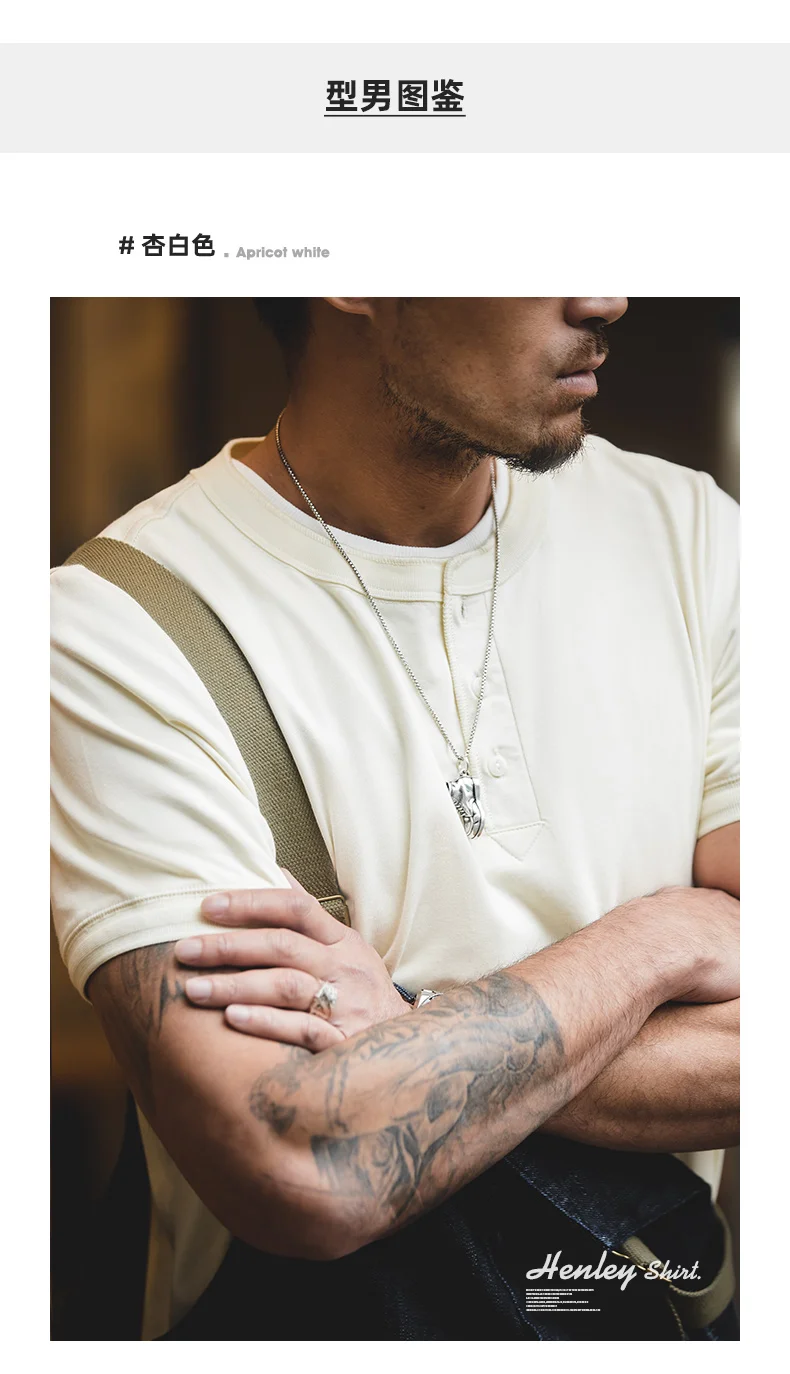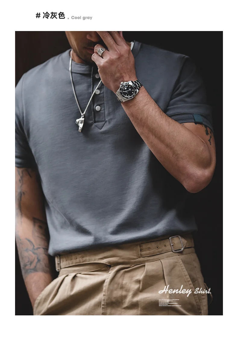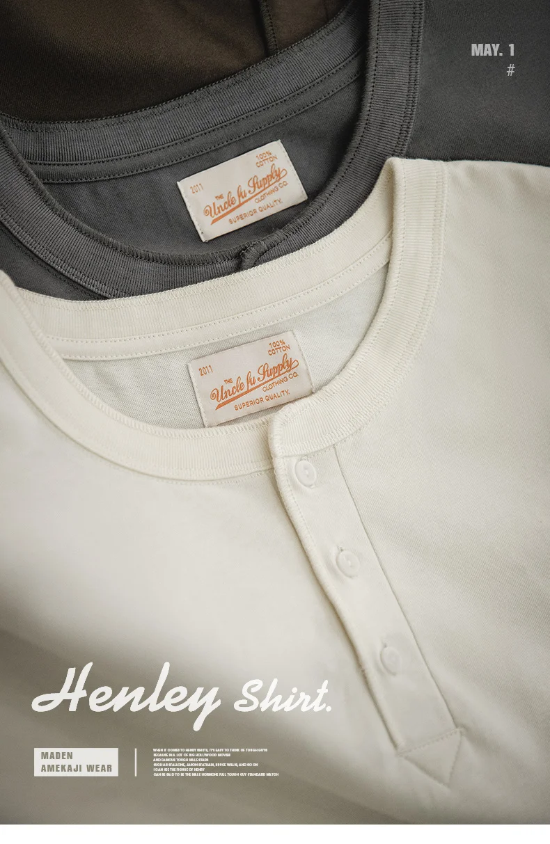 Maden Men’s Vintage Heavyweight Henley Shirts Short Sleeve Casual Solid T-Shirt Basic Plain 100% Cotton Tee Shirts Summer Tops