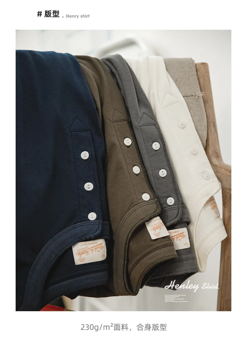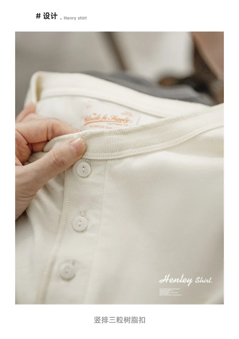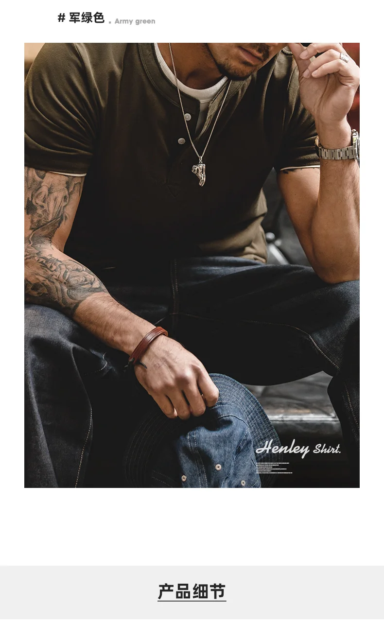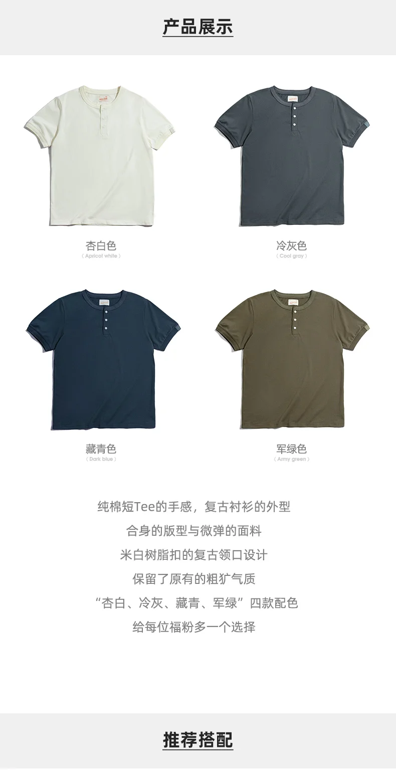 Maden Men’s Vintage Heavyweight Henley Shirts Short Sleeve Casual Solid T-Shirt Basic Plain 100% Cotton Tee Shirts Summer Tops