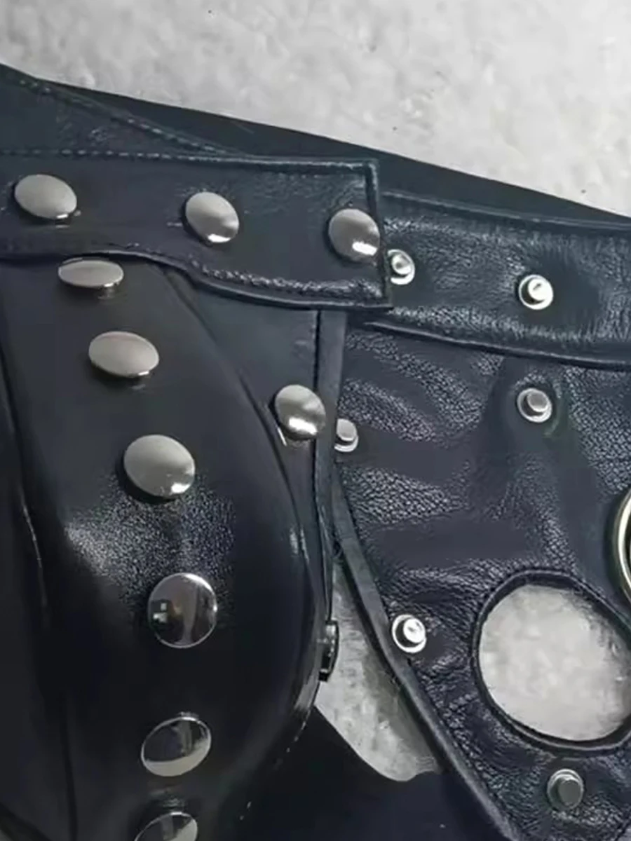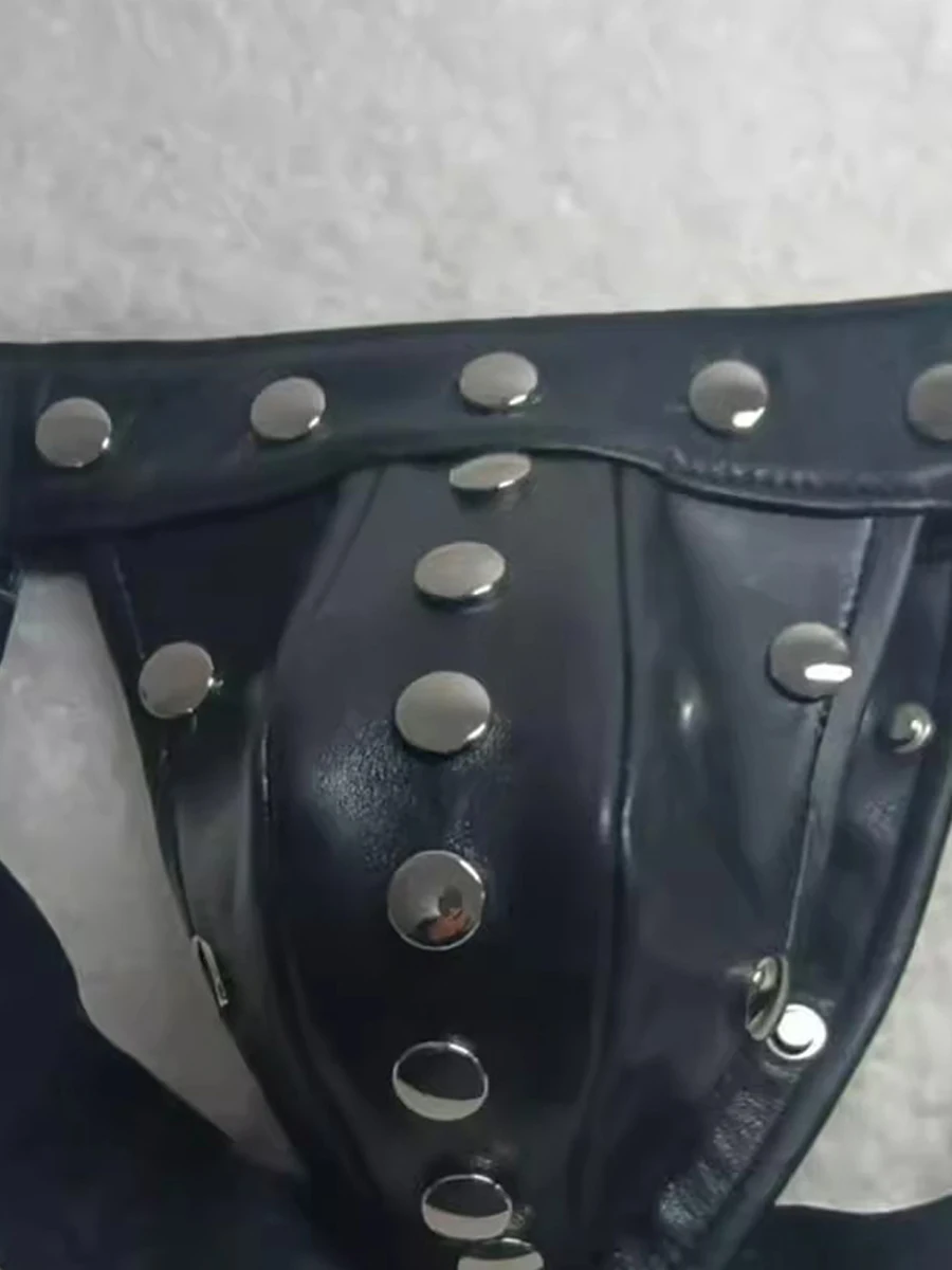 Mauroicardi Spring Summer Soft Black Pu Leather Shorts for Men Rivet Luxury Designer Emo Clothes Mens Underwear Sexy Thong 2025