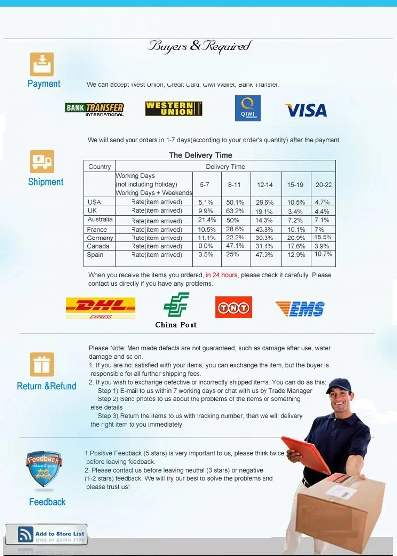 *You can submit refund requests within 15 days after the guaranteed period for delivery (45 days) has expired. You can do it by sending a message on Contact Us page