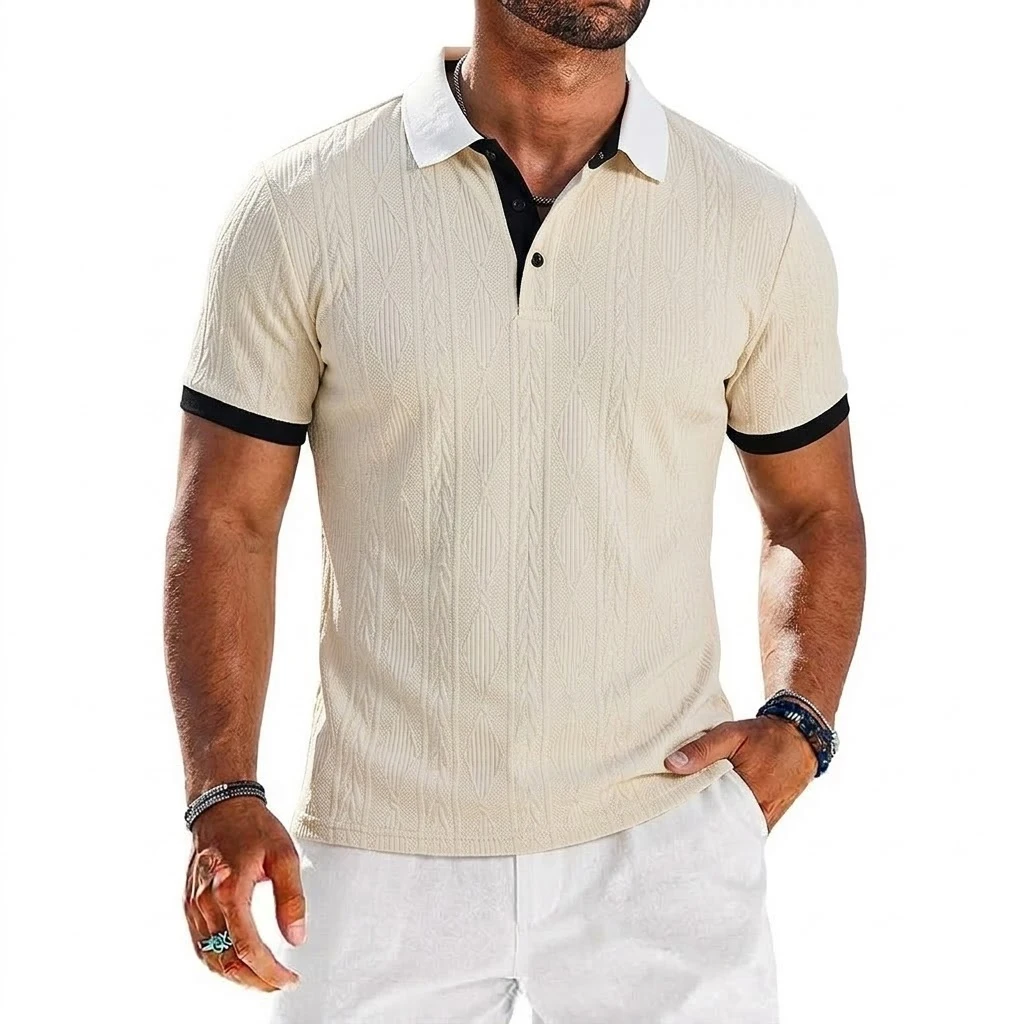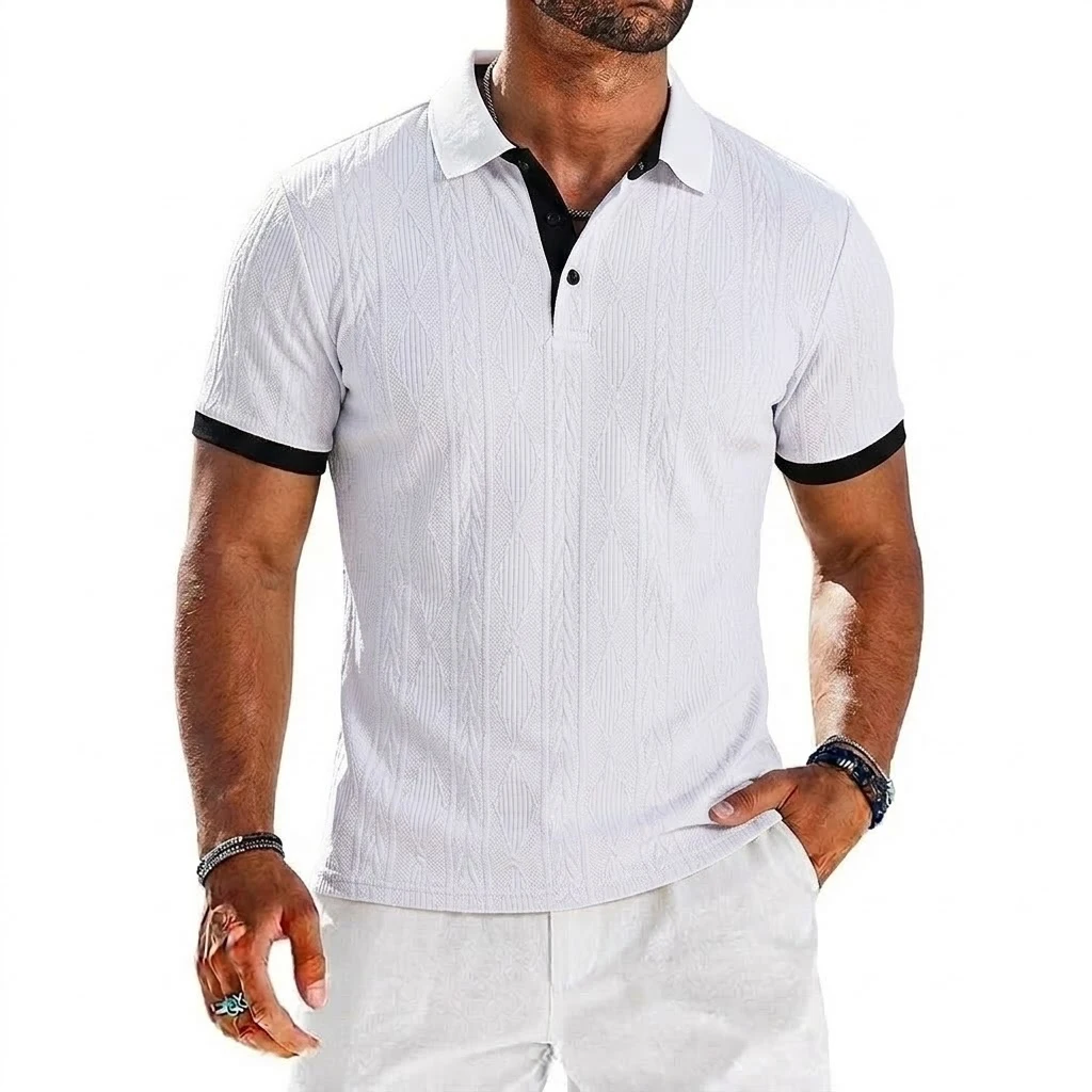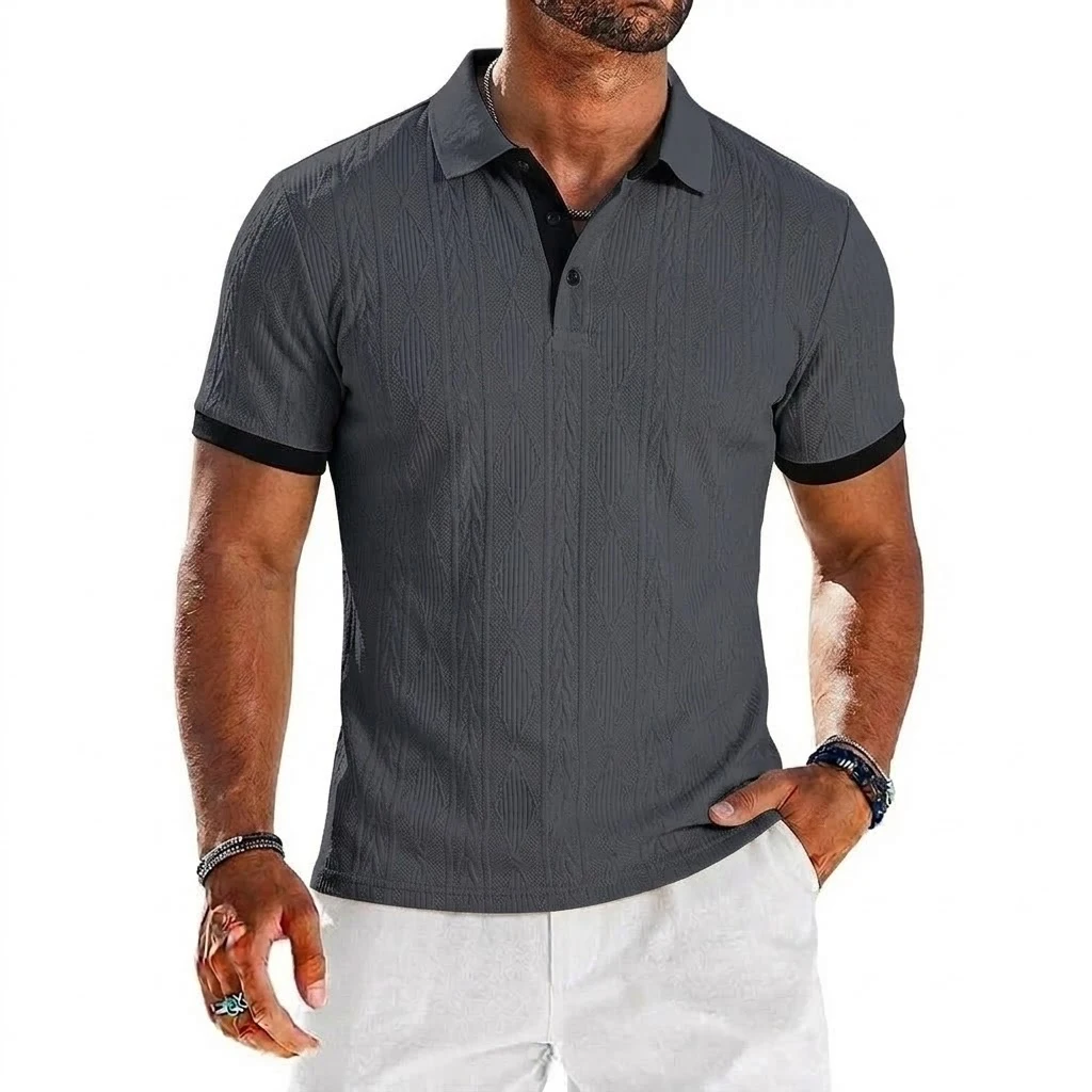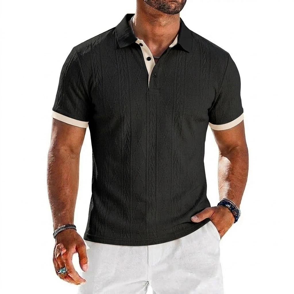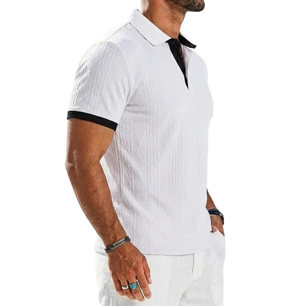 Men S Textured Knit Polo Shirts Stretchy Short Sleeve Golf Tops and Summer Beach Casual Button Streetwear Tees for Daily Wear