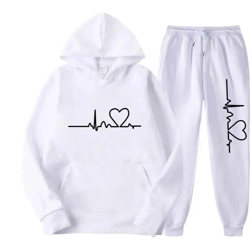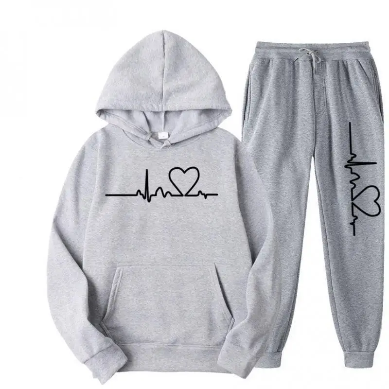 Men Tracksuit 2 Pieces Sets Hooded Sweatshirt +Drawstring Pants Male Hoodies Running Sportswear Men Women Autumn Sportwear Set