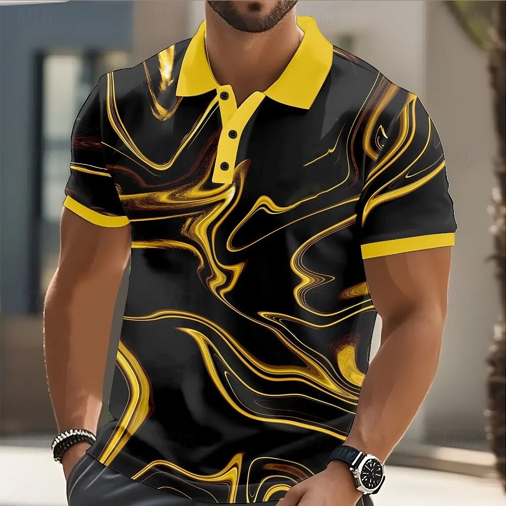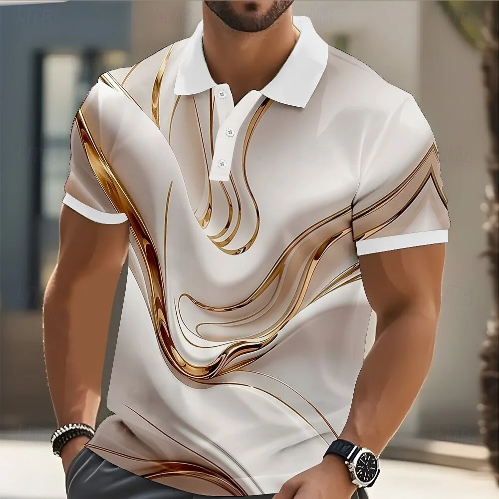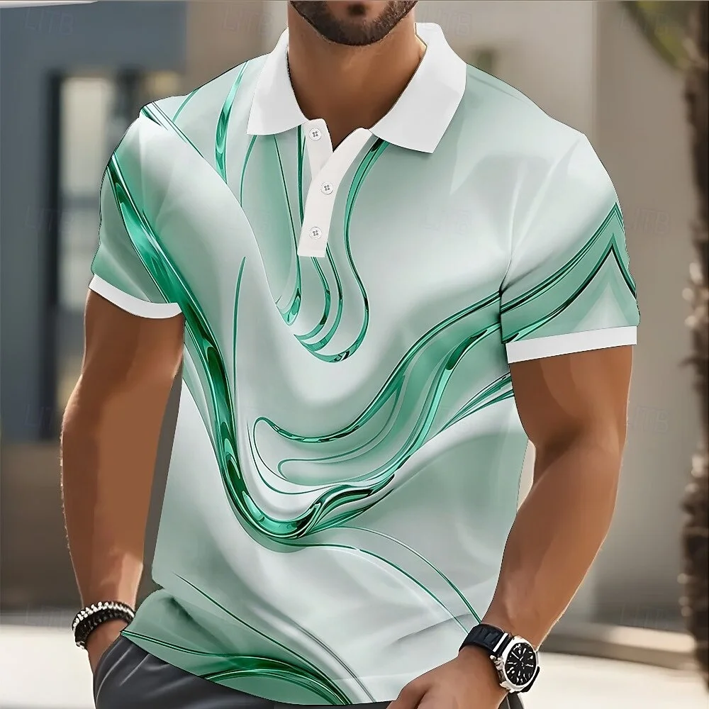 Men’s Abstract Geometric Polo Short Sleeve Shirts Lapel Business Casual Athleisure Daily Wear 3D Print Buttons Spring 2026