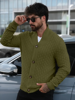 Men’s Autumn Winter Cardigan Sweaters Warm Knitted Open Front Long Sleeve V-Neck Pullover in Solid Color for Men