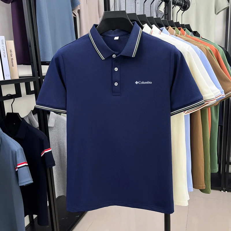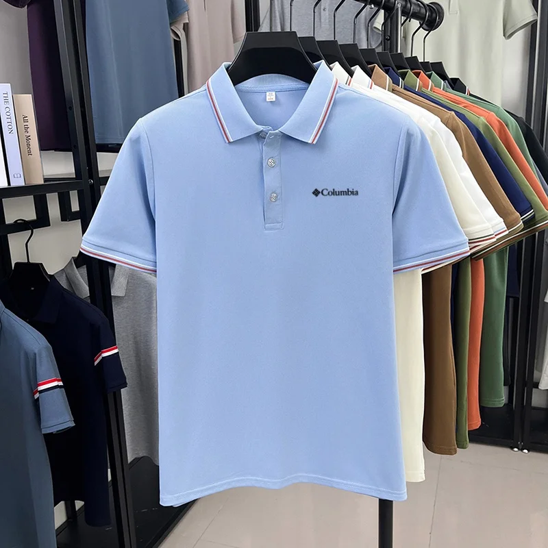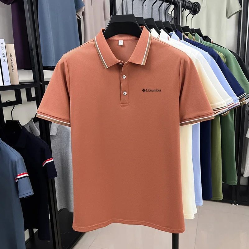 Men’s brand polo shirt printed short sleeved 2026 summer new cool and comfortable casual top high-end fashion striped T-shirt