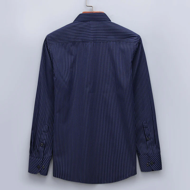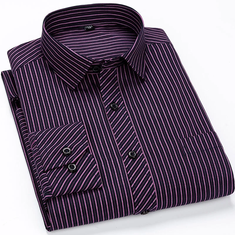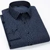Mens Business Casual Long Sleeved Striped Shirt Classic Formal Male Social Dress Button Shirts Slim Fit Large Size 46 47 48 9XL