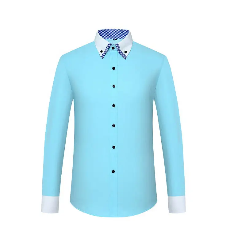 Men’s Business Dress Shirt Long Sleeve Non Iron Fashion Double Layer Formal Regular Fit Office Camisa Social Solid Button Shirts