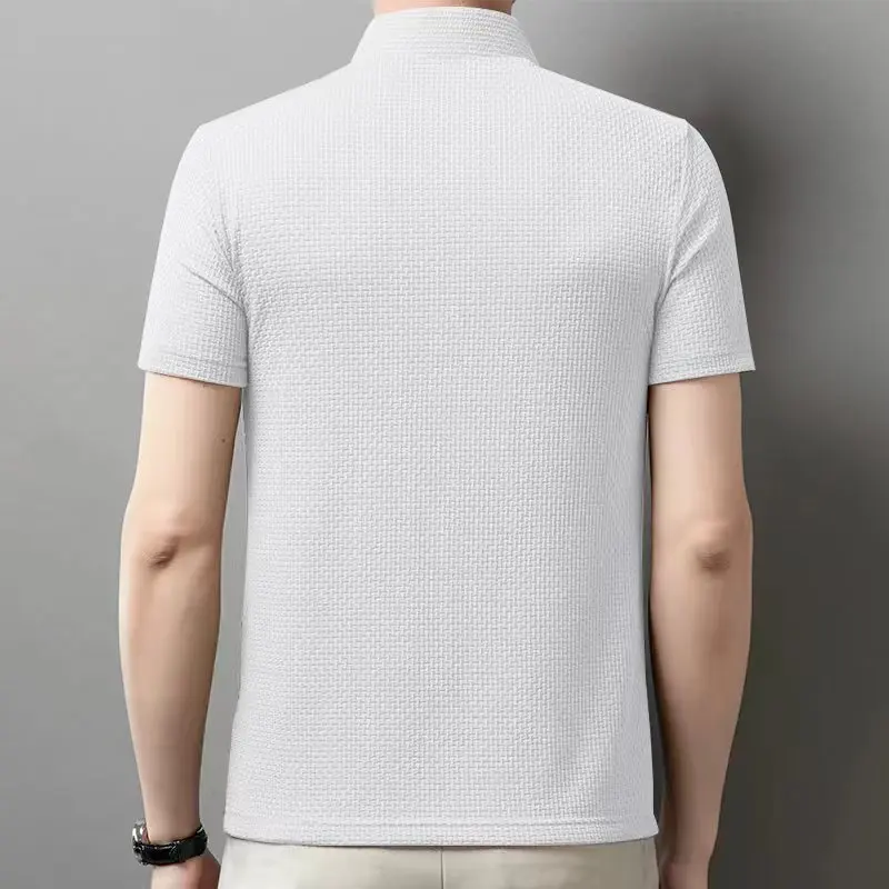 Men’s Business Polos Casual Short Sleeved Bone Flower Solid Color POLO Shirt Fashion Breathable Comfortable Summer Versatile Top