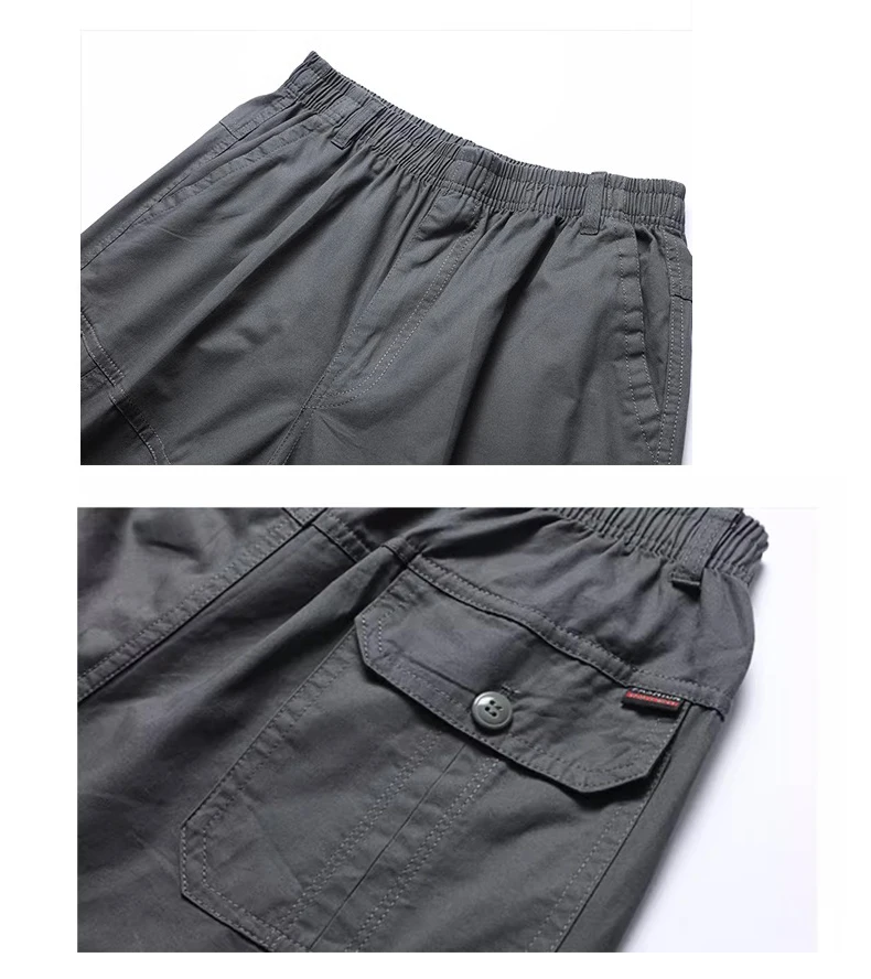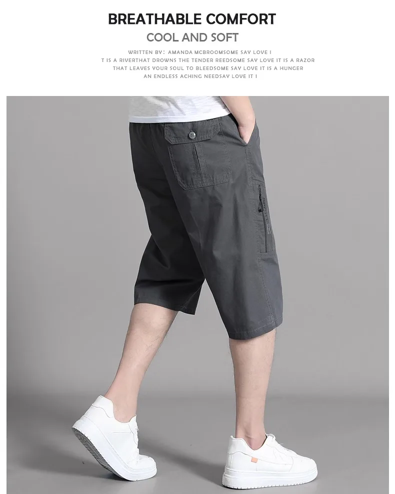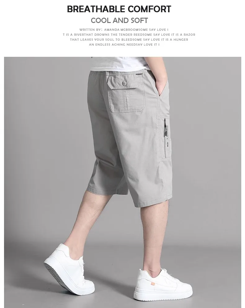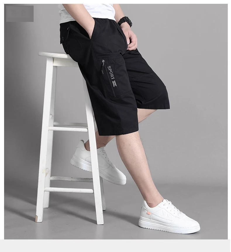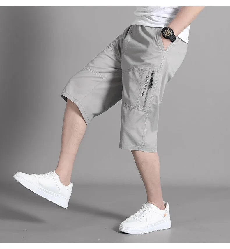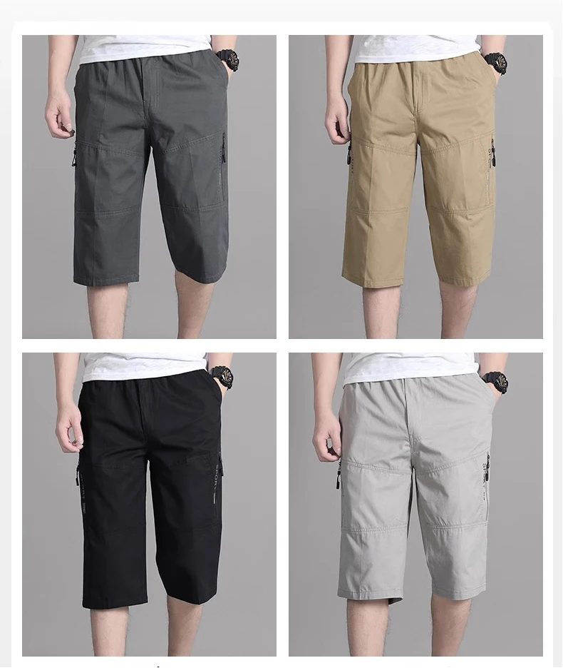 Mens Cargo Shorts Knee Pants Zipper Pocket Summer Cotton Shorts Climbing Jogger Elastic Waist Sports Wear