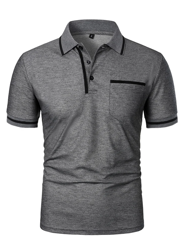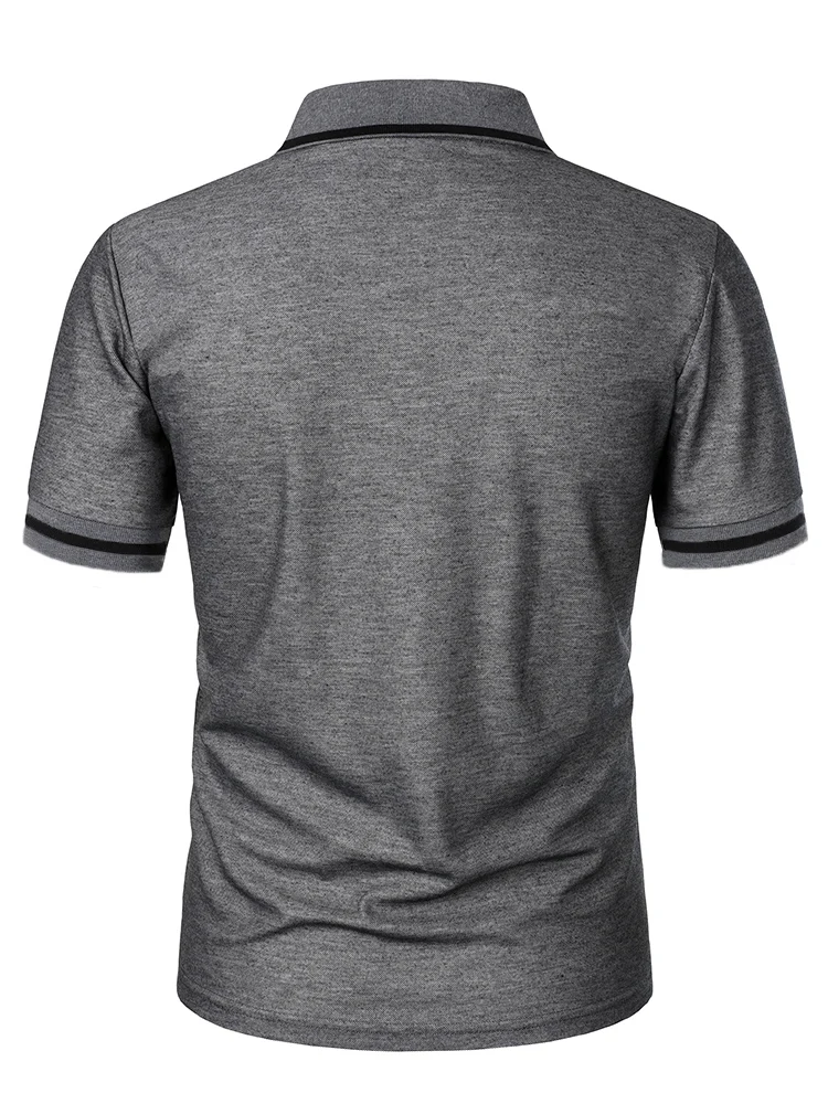 Men’s casual fashion solid color short sleeve top lapel men’s short sleeve T-shirt Casual fashion solid color top short sleeve