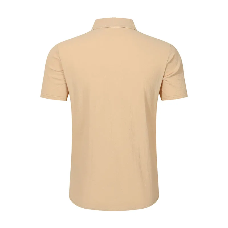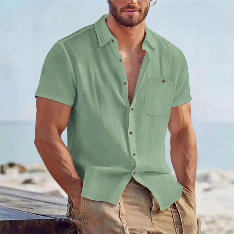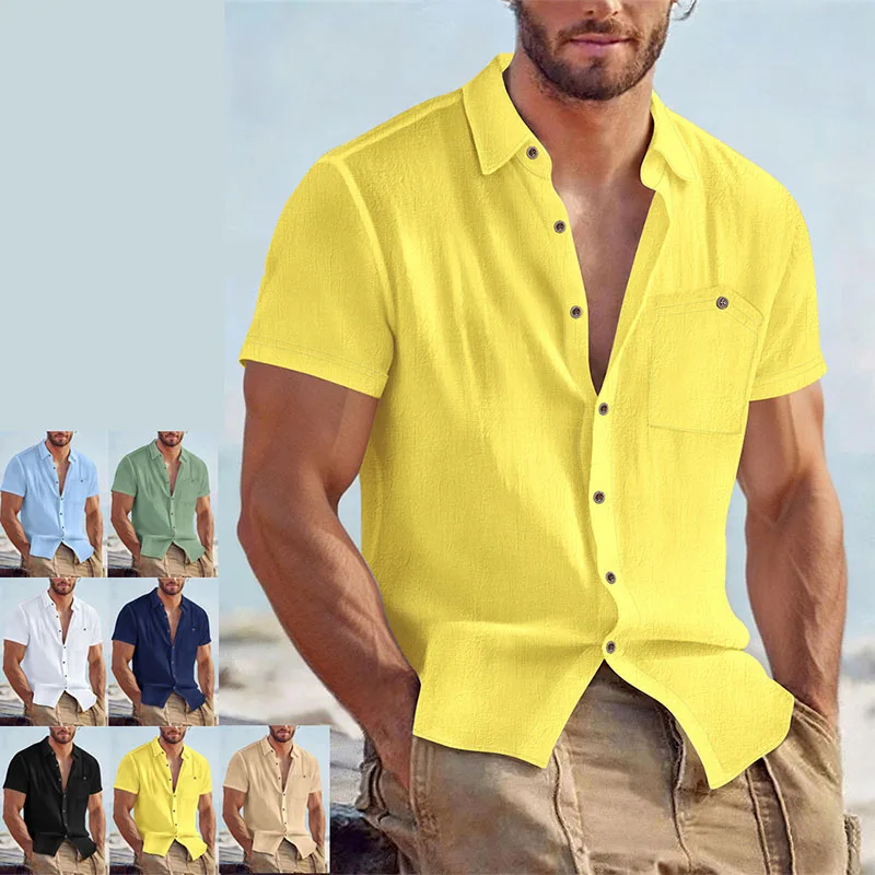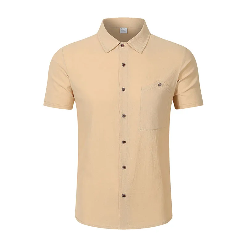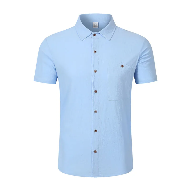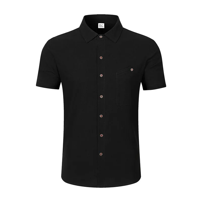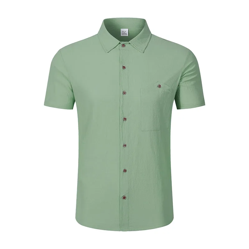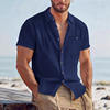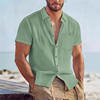 Men’s Casual Linen Blend Shirt Short Sleeve Turn Down Collar Button Up Lightweight Breathable Beach Tunic Tops
