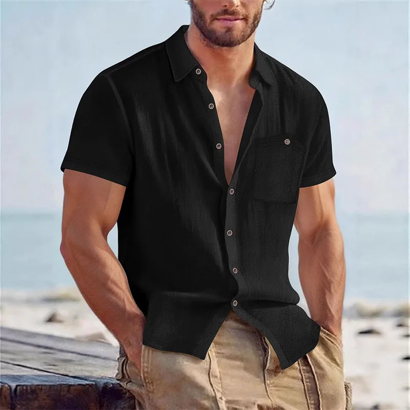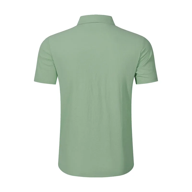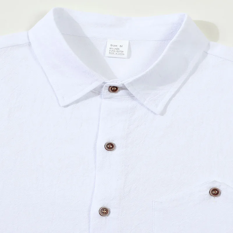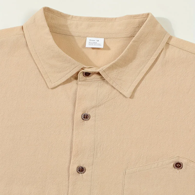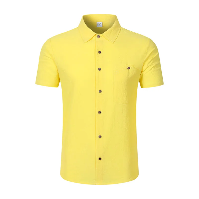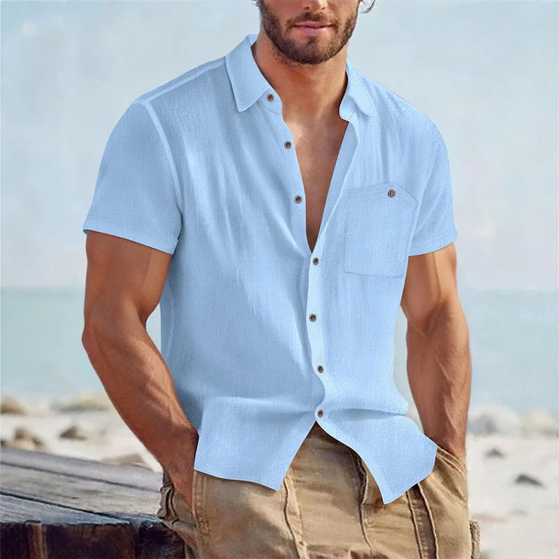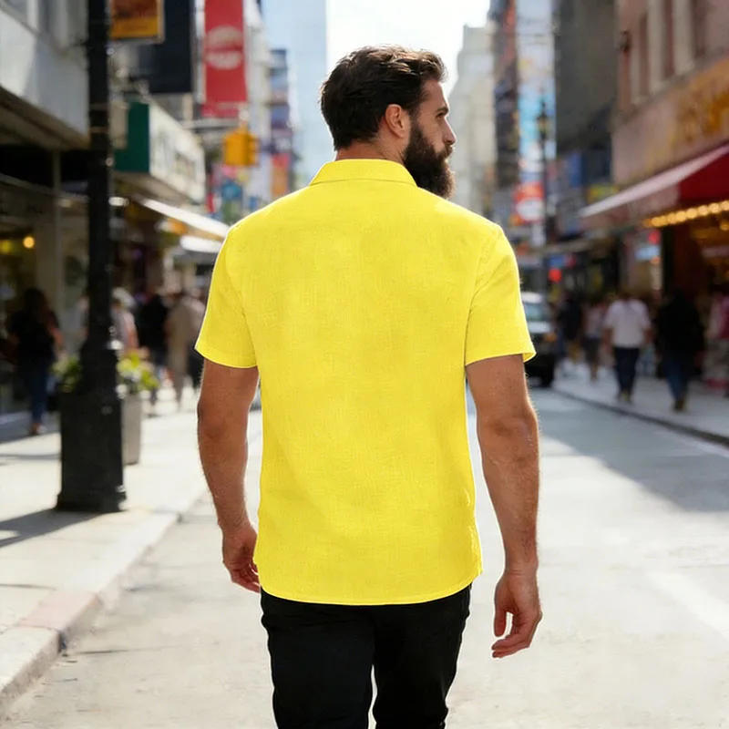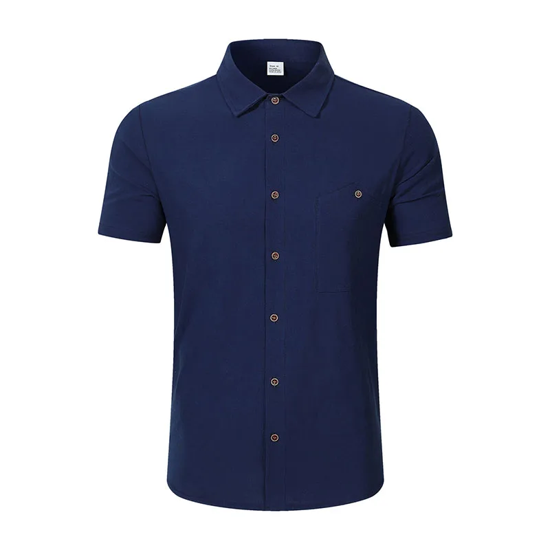 Men’s Casual Linen Blend Shirt Short Sleeve Turn Down Collar Button Up Lightweight Breathable Beach Tunic Tops