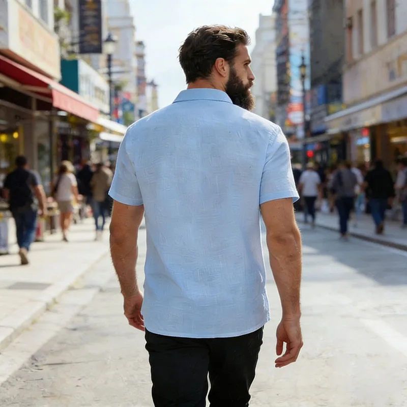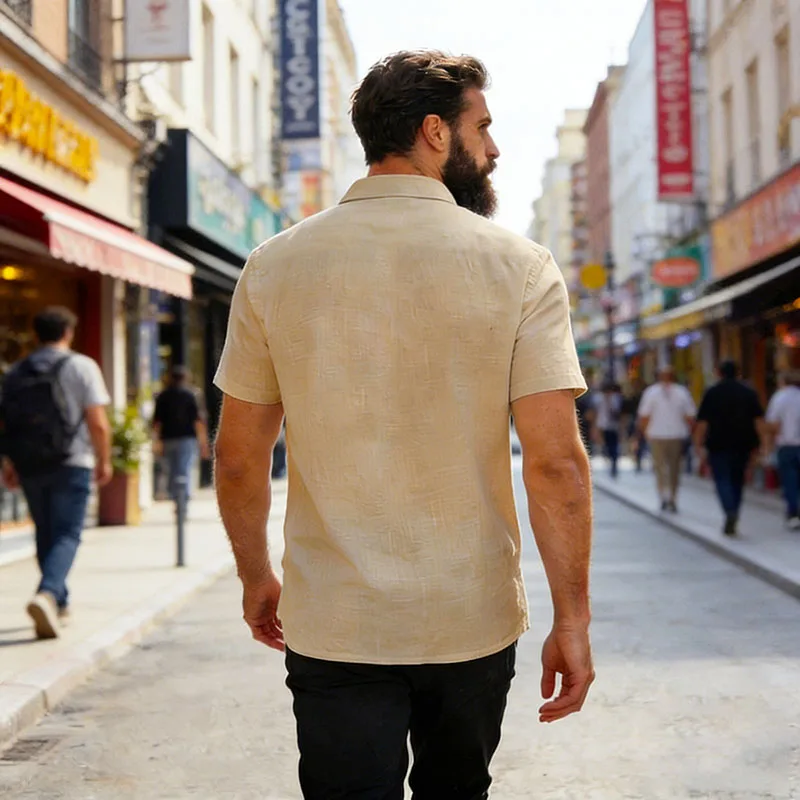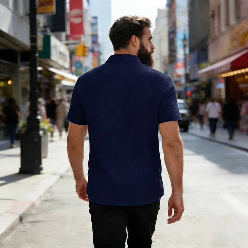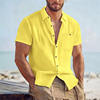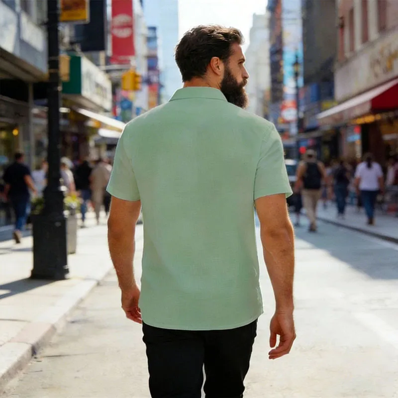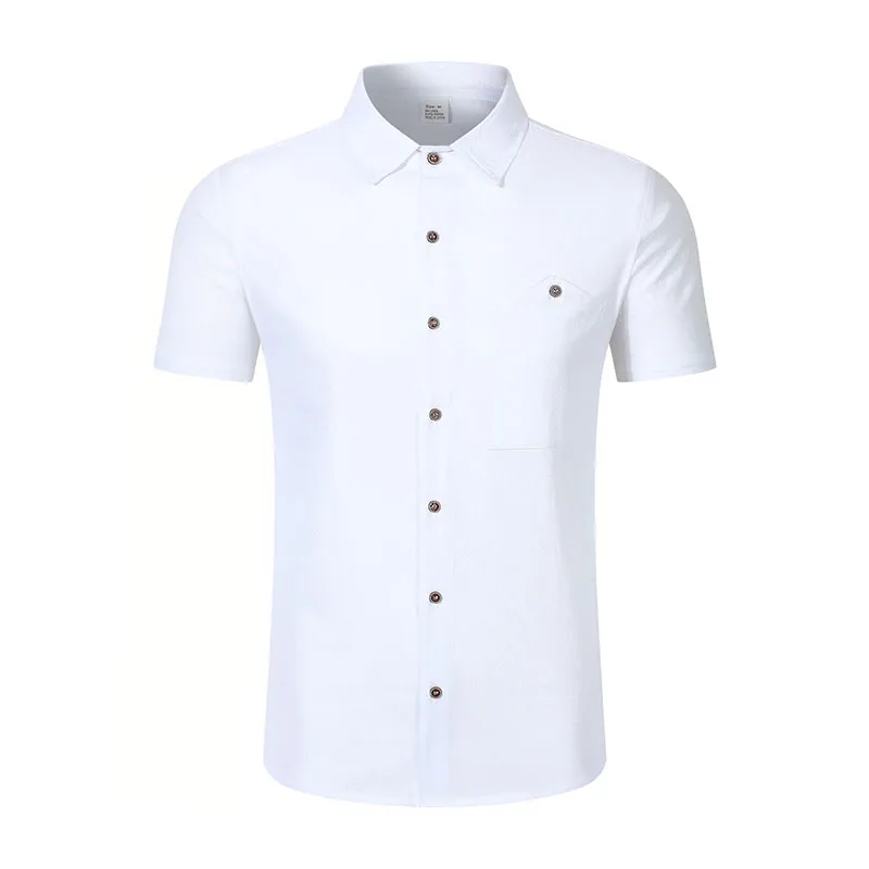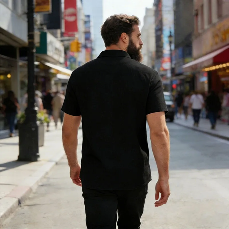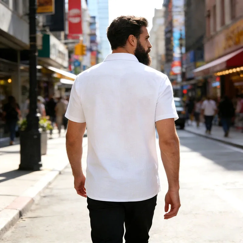 Men’s Casual Linen Blend Shirt Short Sleeve Turn Down Collar Button Up Lightweight Breathable Beach Tunic Tops