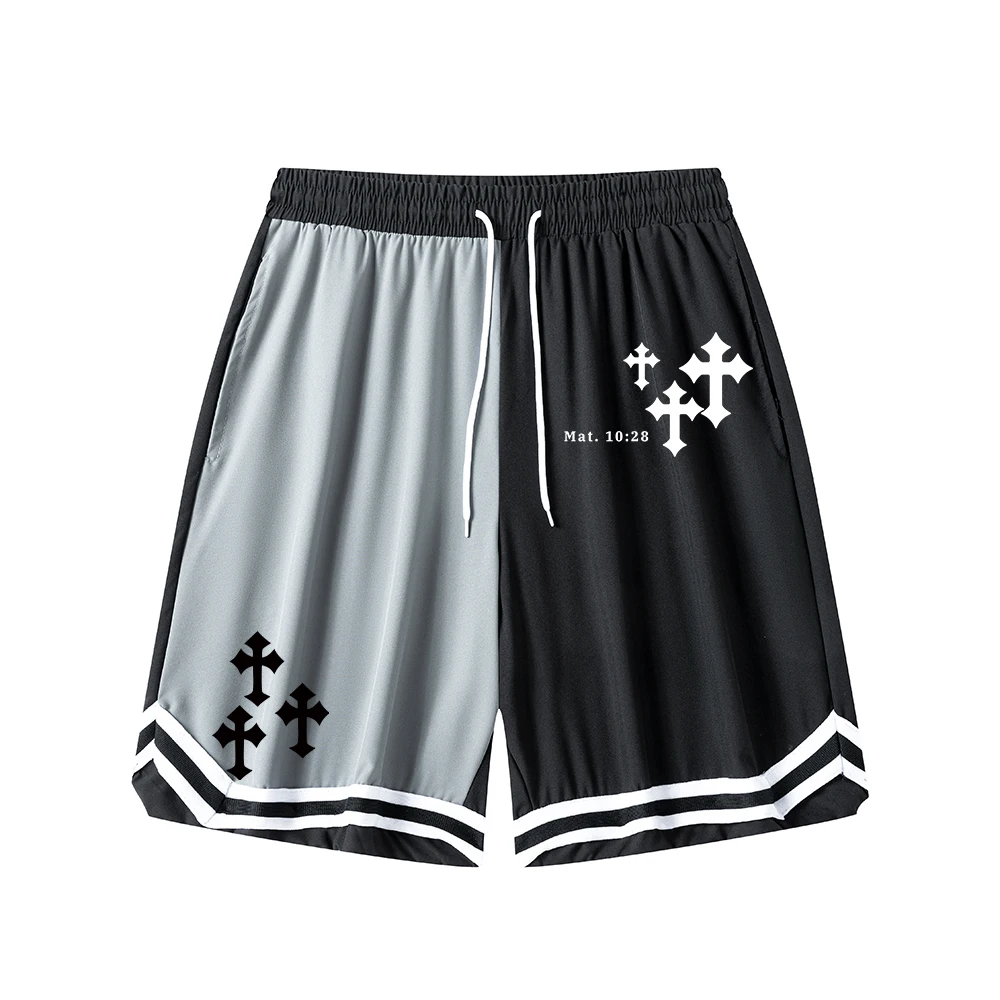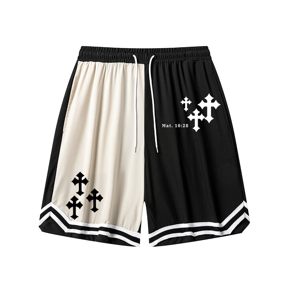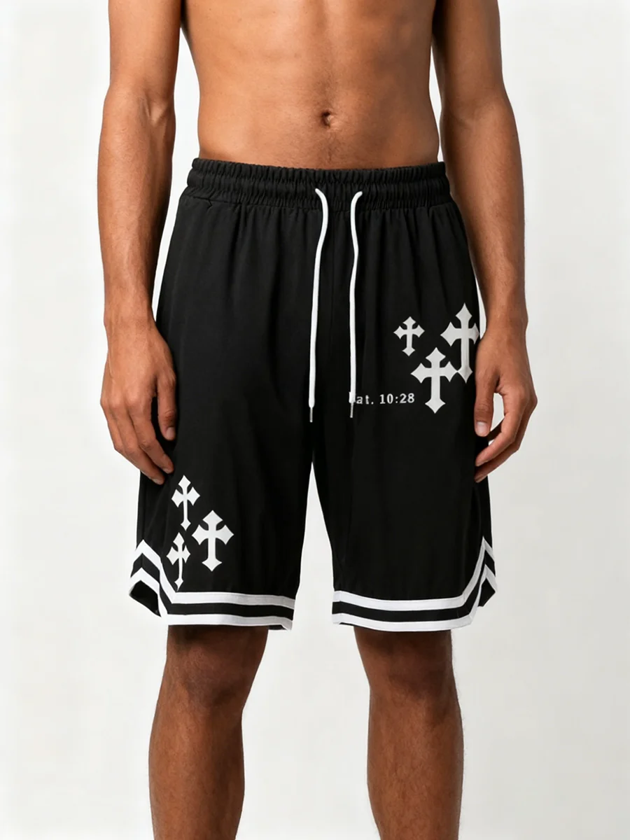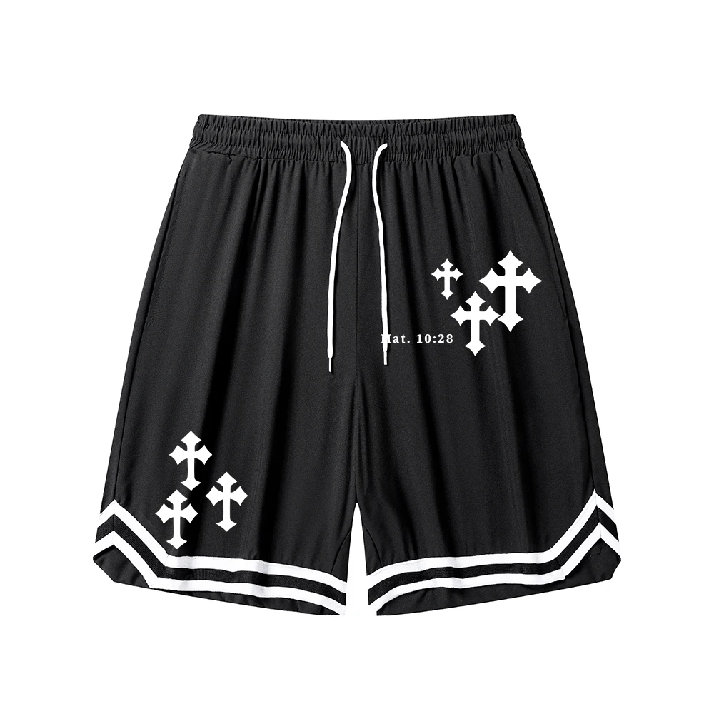Men’s Cross Print Fitness Shorts Casual Quick Drying Breathable Five-Point Shorts Suitable For Running Training And Beachwear