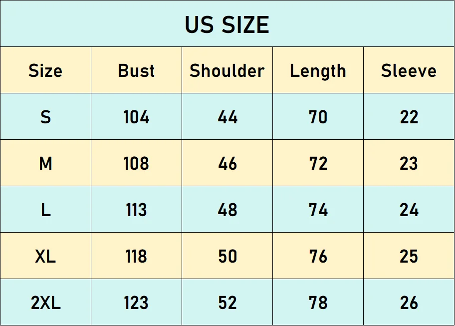 2XL—bust 123 cm, width 52 cm, shirt length 78 cm