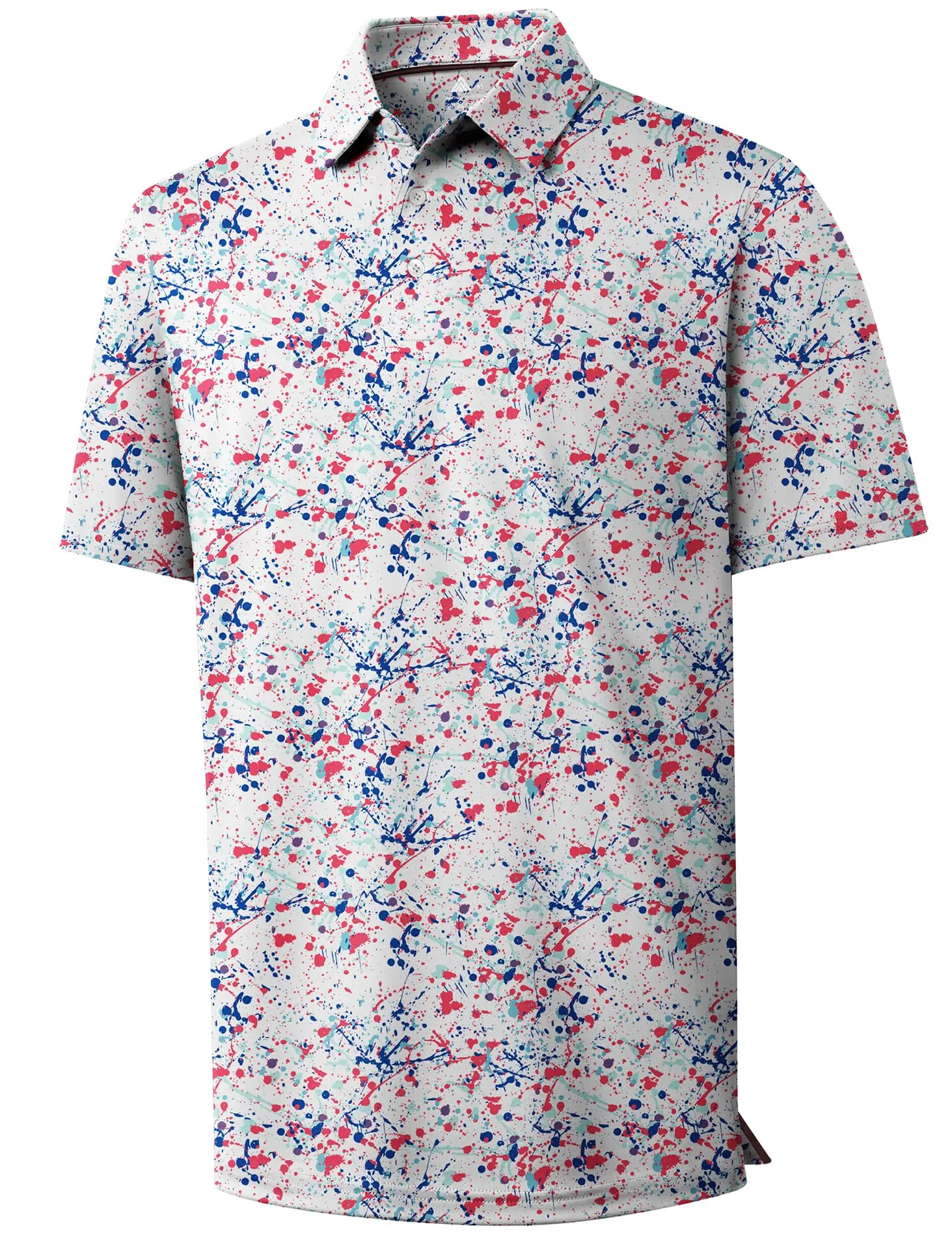 Mens Golf Shirts Short Sleeve Print Patterns Performance Moisture Wicking Polo Shirt 2026