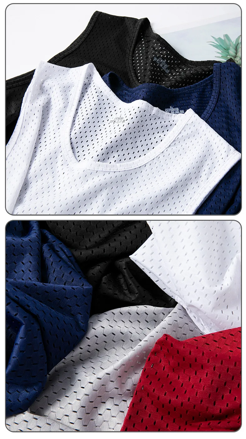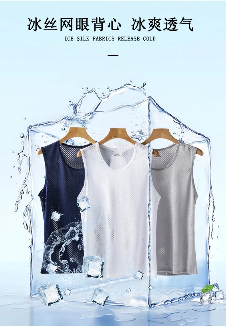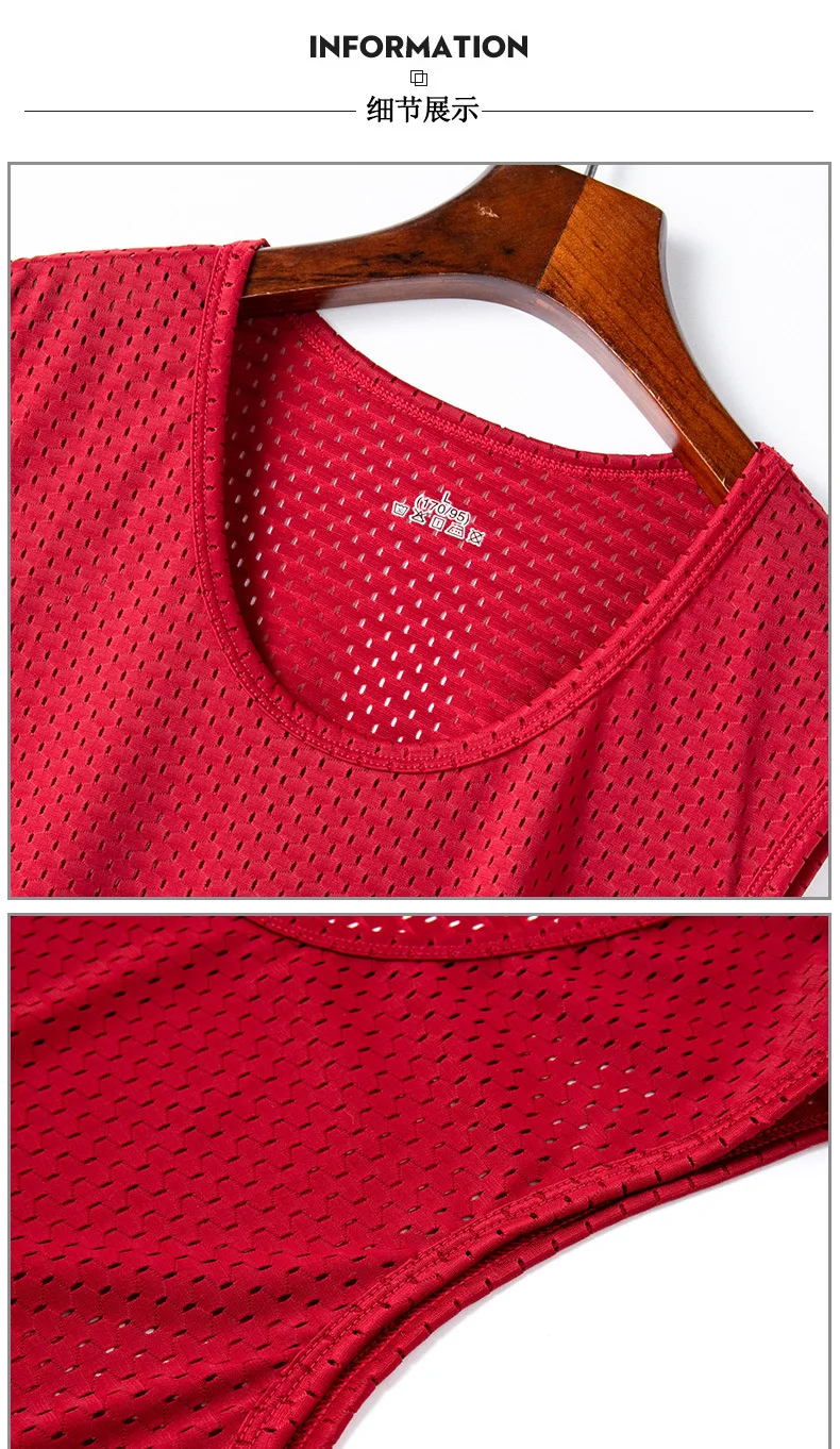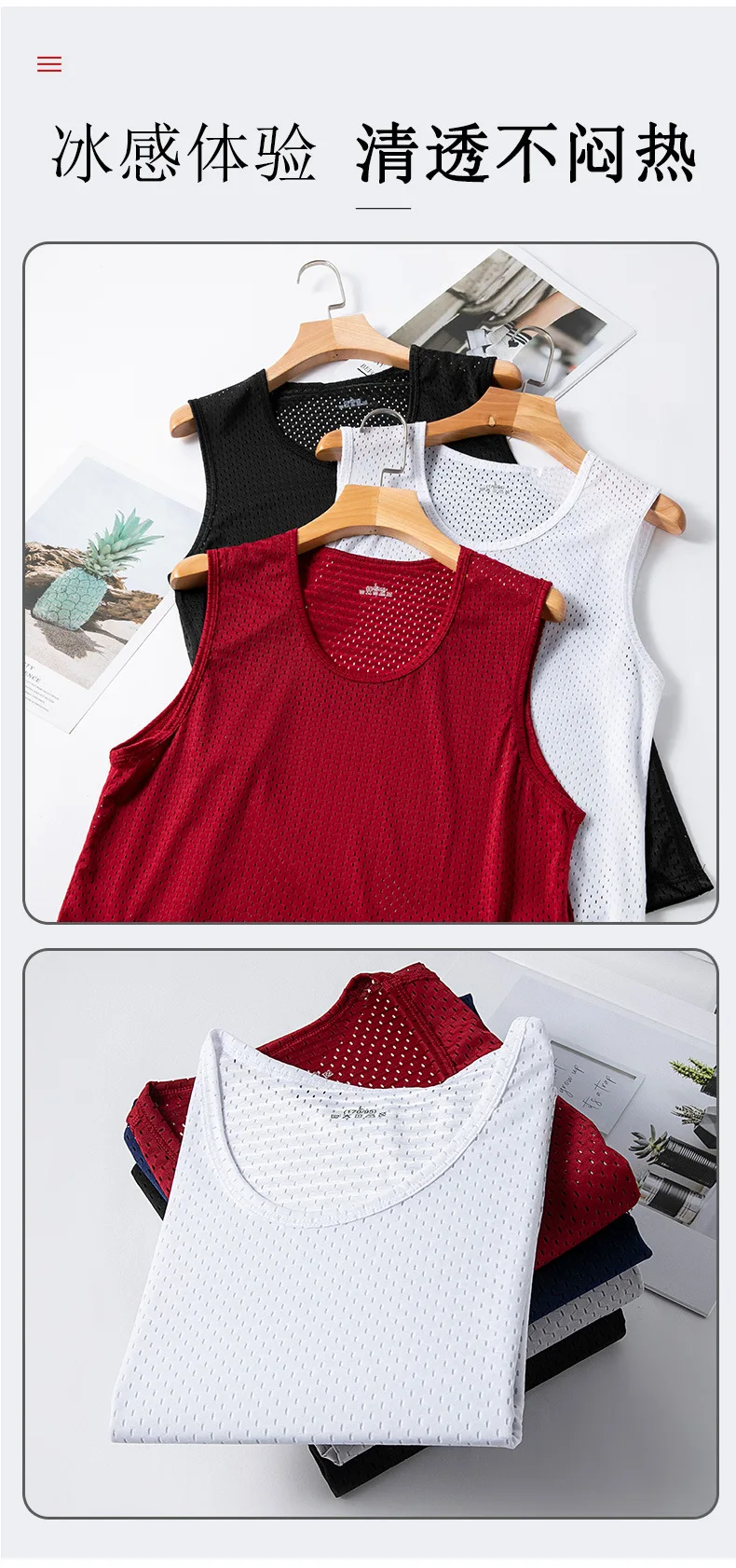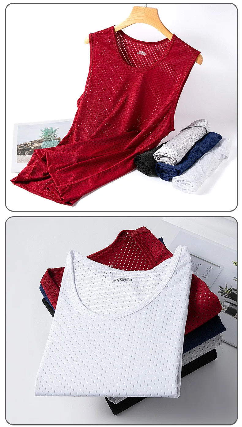 Men’s Ice Silk Mesh Tank Tops Man Gym Stringer Transparent Bodybuilding Sleeveless Shirt Fitness Vest Male Muscle Singlets L-5XL