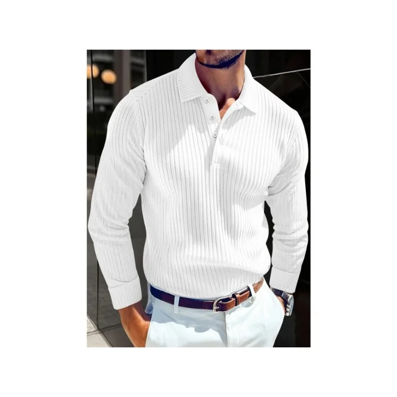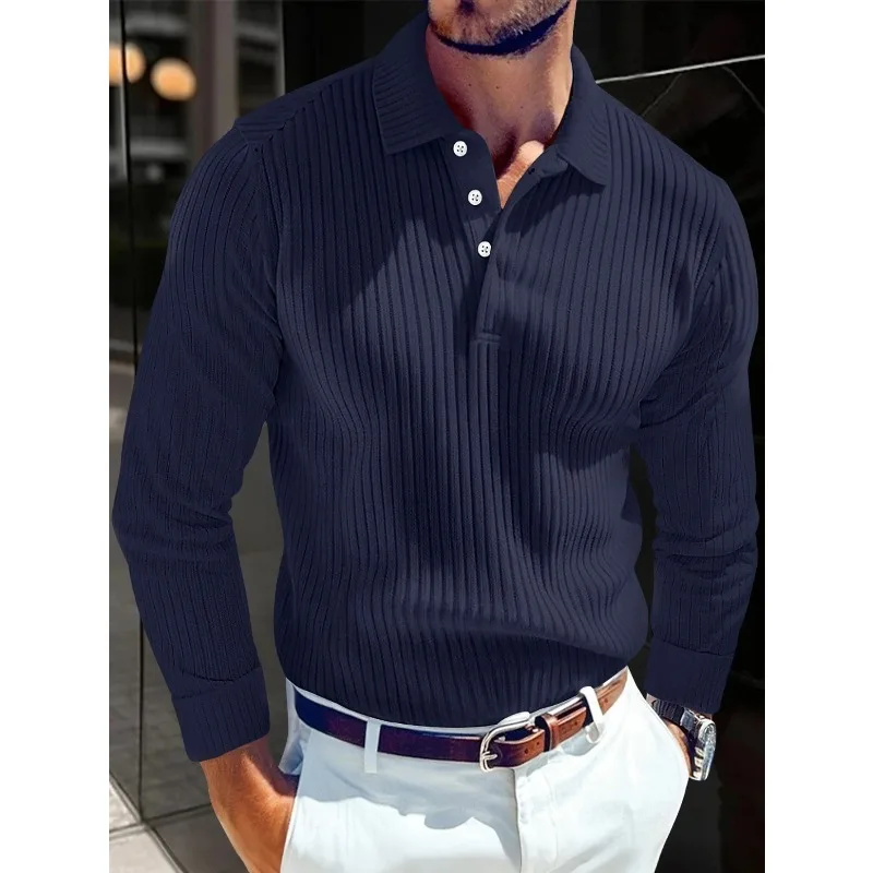 Mens Long Sleeve Polo Sweater Knit Polo Casual Heavyweight Thermal Pullover Sweater outdoor Anti-pilling Solid Color Pullover