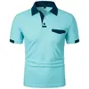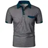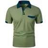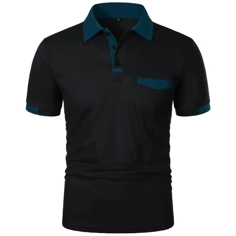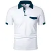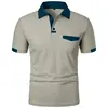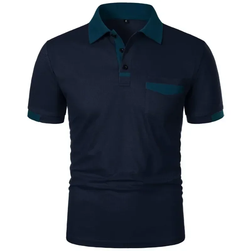 Mens New Summer Short Sleeve Color Block Polo Shirt with Pocket Summer Casual Sporty Ideal for Daily Outdoor and Streetwear Tops