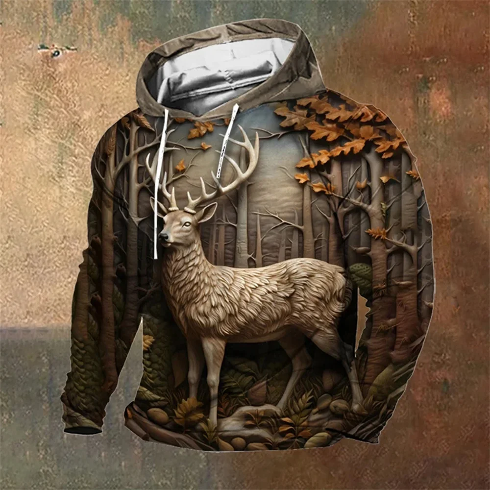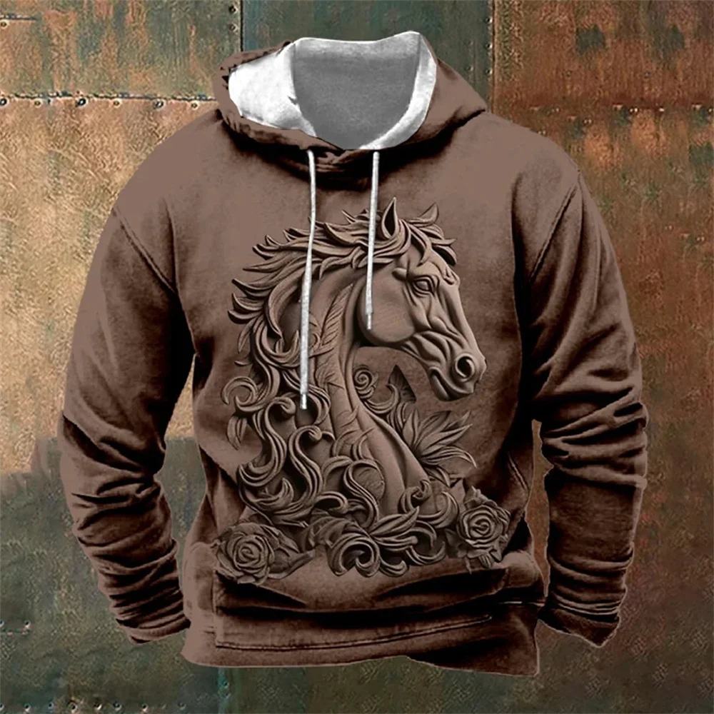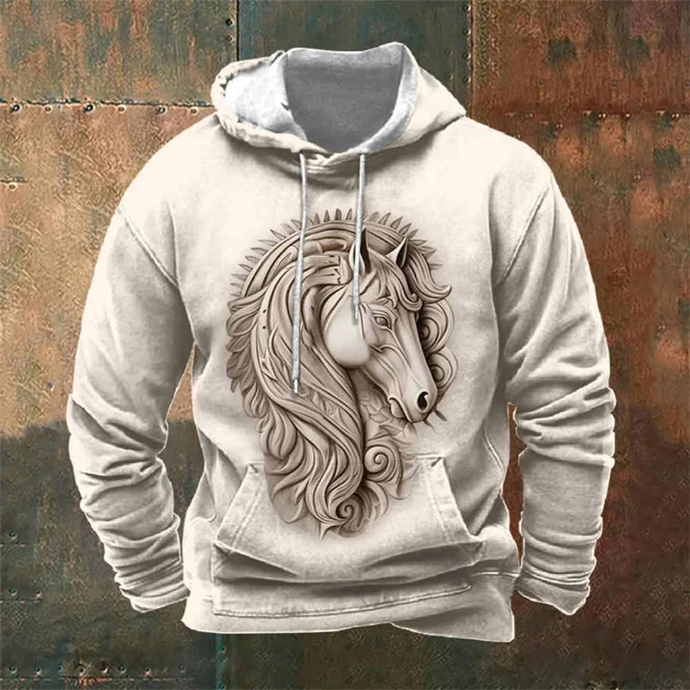 Men’s Retro Western 3D Denim Printed Hooded Sweatshirt Casual Oversized Loose men’s Clothing Top Fashion Street Sportswear