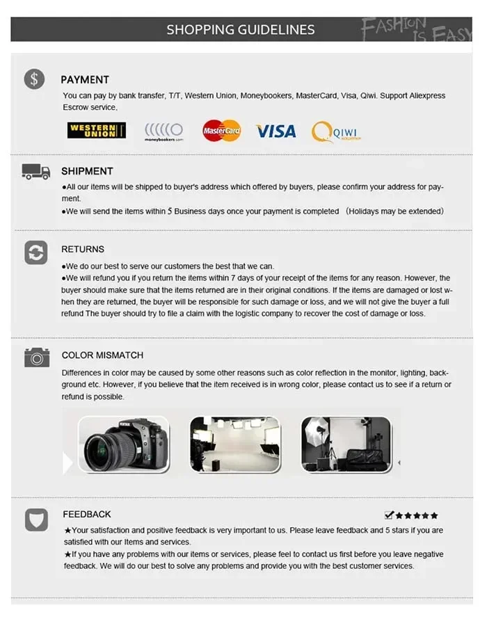It's okay to change your mind! You can send your order back for a full refund, we've got you covered with our full Buyer protection.