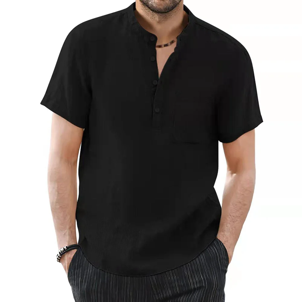 Men’s Short Sleeve T-shirt Cotton and Linen Casual Men T-shirts Solid Color Summer Shirt Male Cozy Breathable
