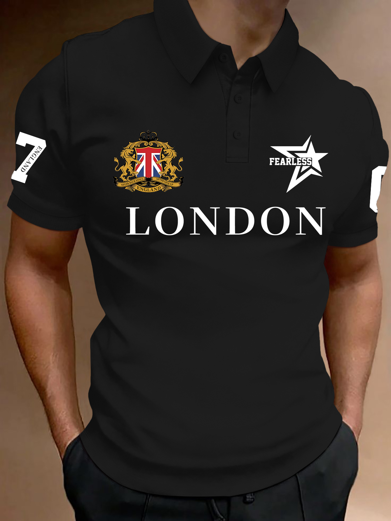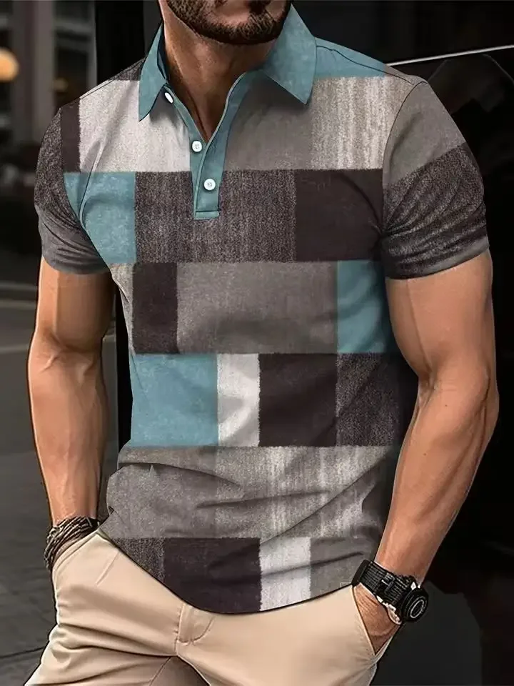 Men’s Short-sleeved Polo Shirt Patchwork Pattern Design Gray Comfortable Design In Summer Tops Polo Shirts