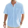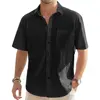 Men’s Solid Color Cotton Linen Short Sleeve Shirts Vacation Beach Summer Tops with Pocket Casual Lightweight Button Shirts