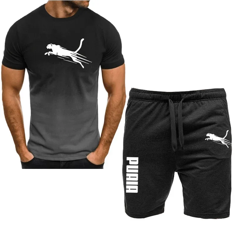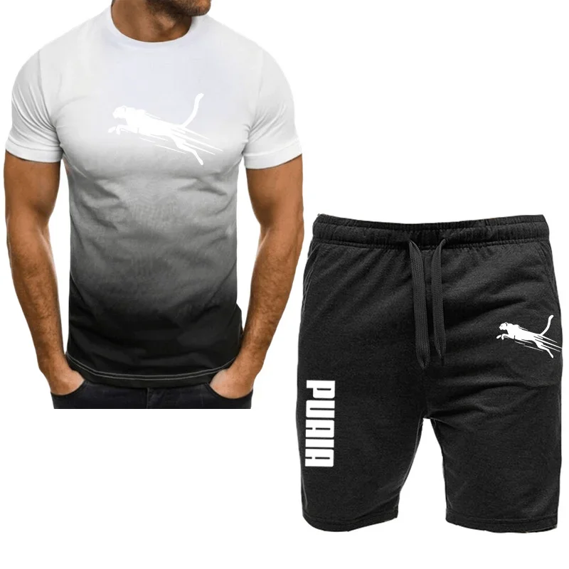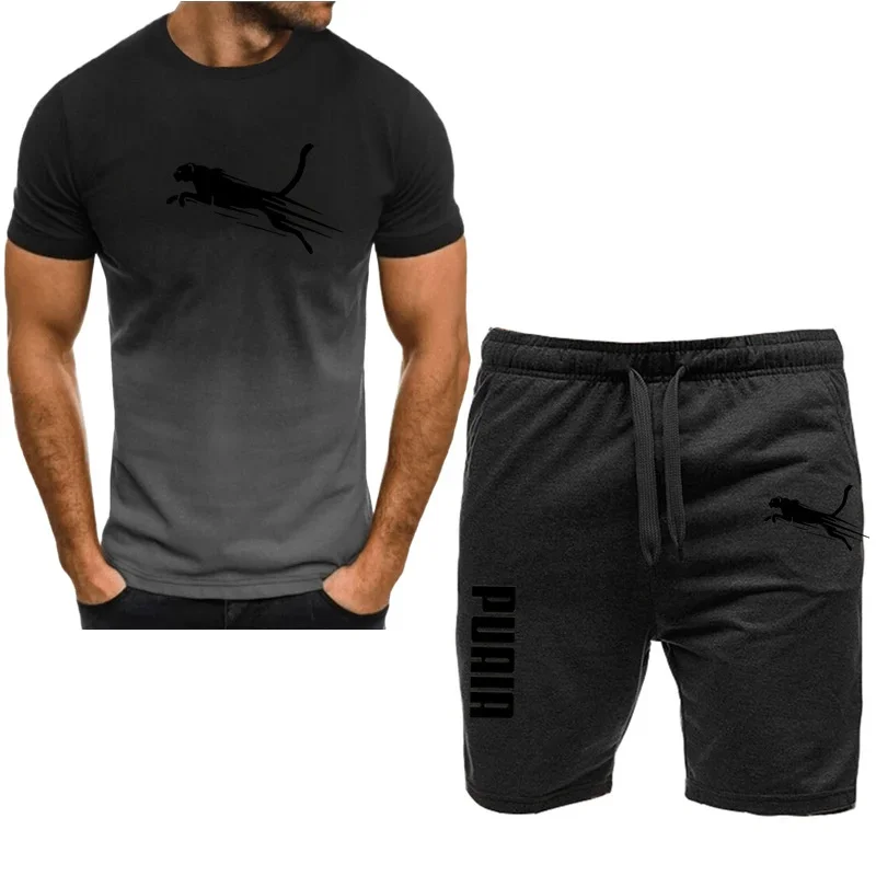Men’s sports set, casual T-shirt set and running shorts, breathable, 2 pieces, new 2024