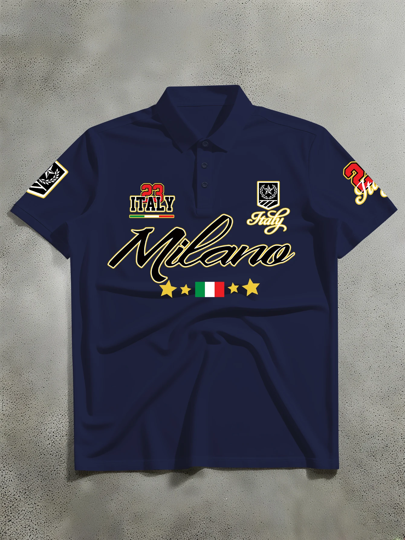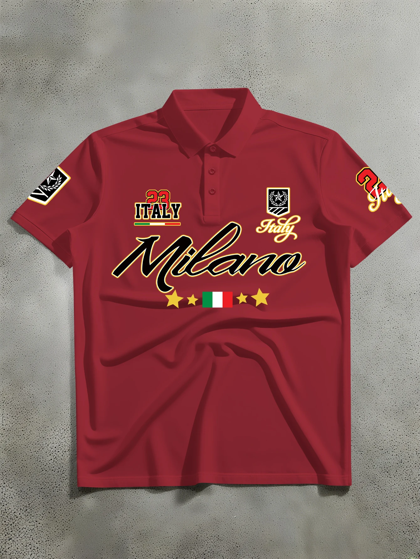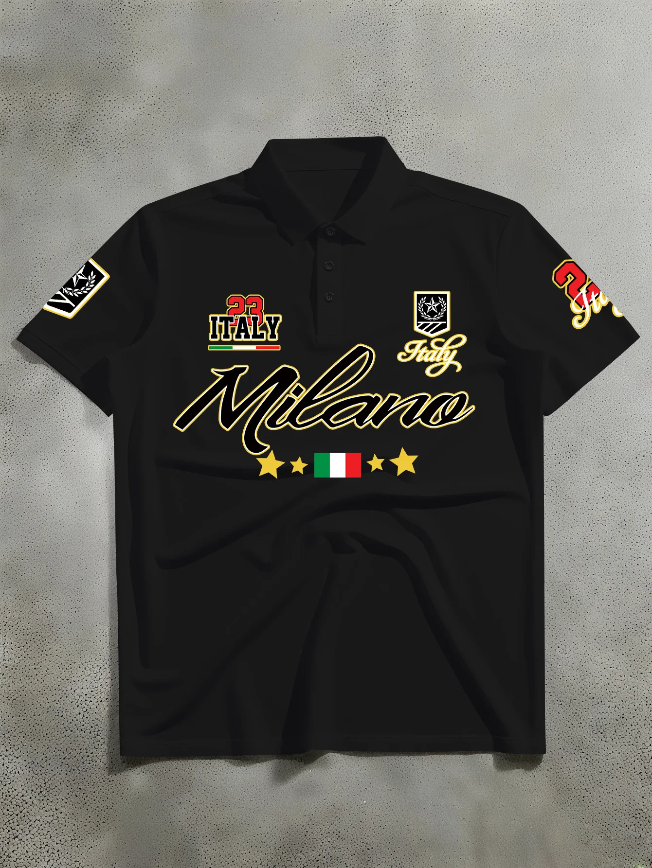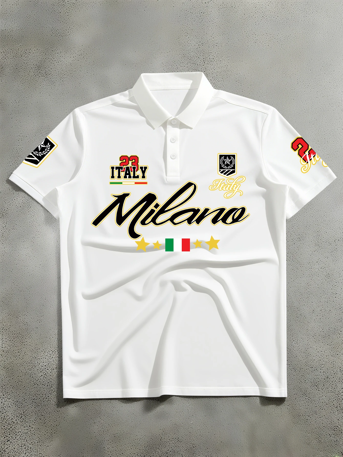 Men’s Streetwear Polo Shirt Milano Italy Script Graphic Print Turn Down Collar Short Sleeve Polyester Tops S-XXL