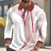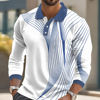 Men’s Striped Print Golf Shirt Long Sleeve Polo Shirt Lapel Business Casual Formal Button 3D Printing Autumn and Winter