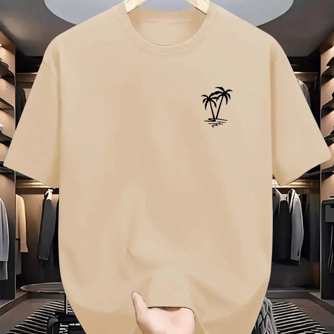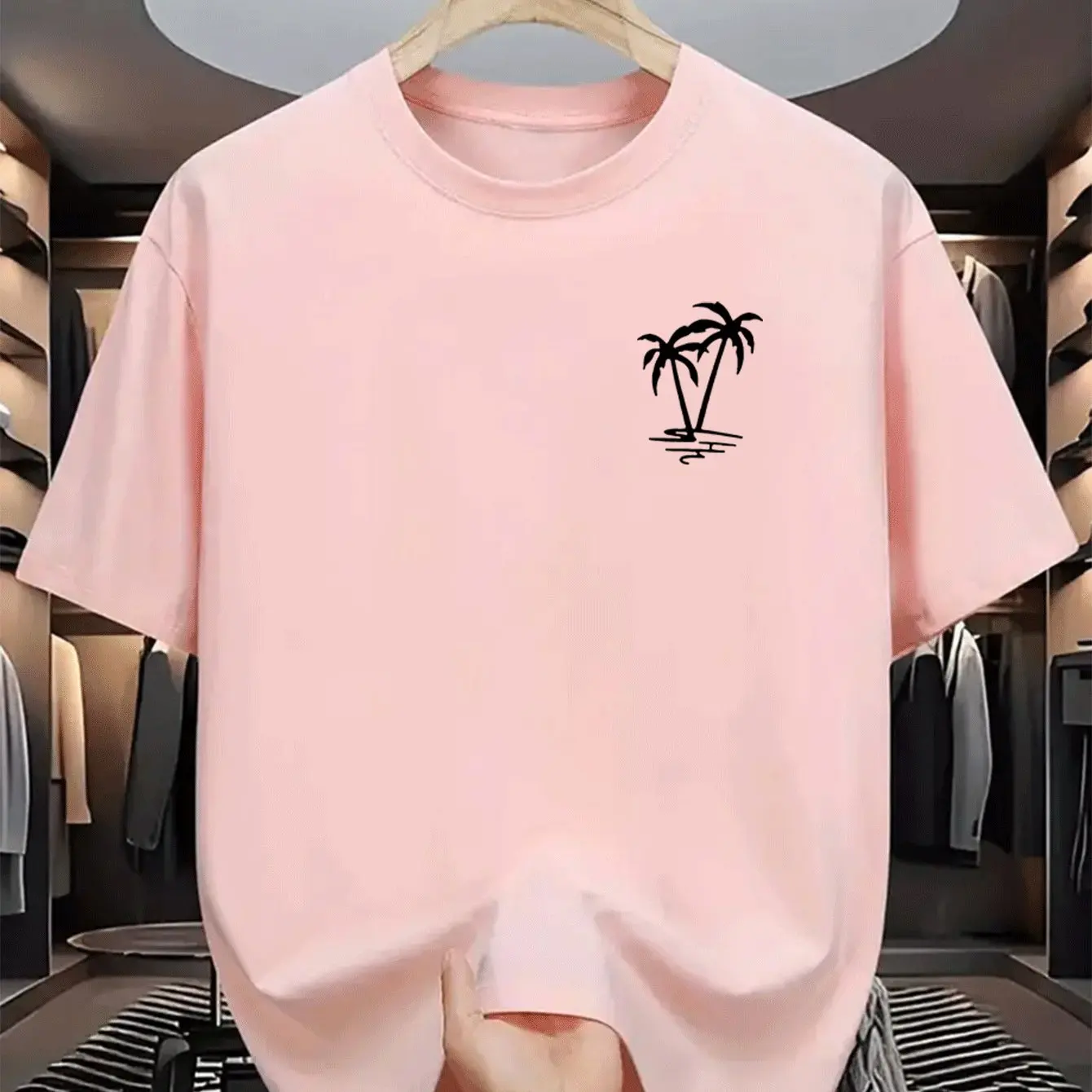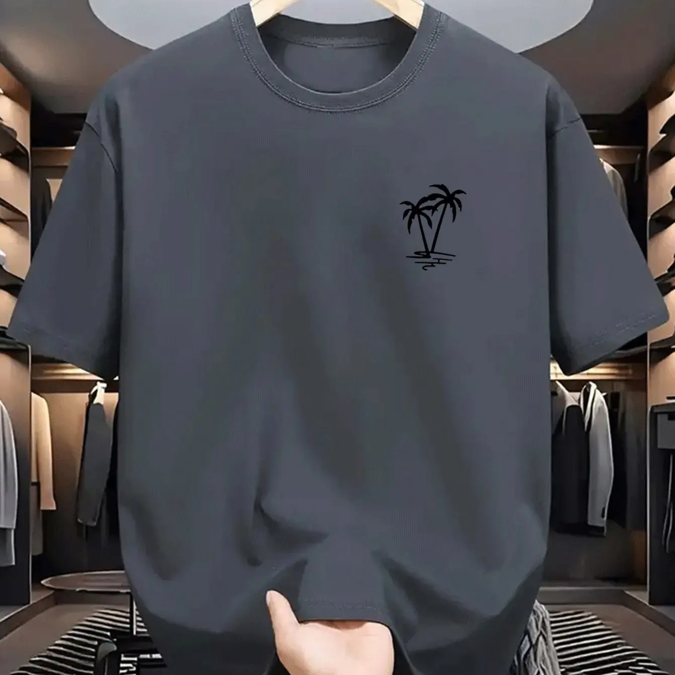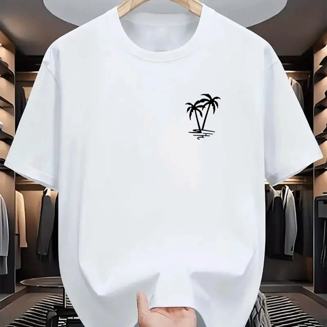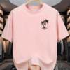 Men’s summer 100% cotton fashionable casual loose coconut tree pattern printed sports round neck short sleeved T-shirt top